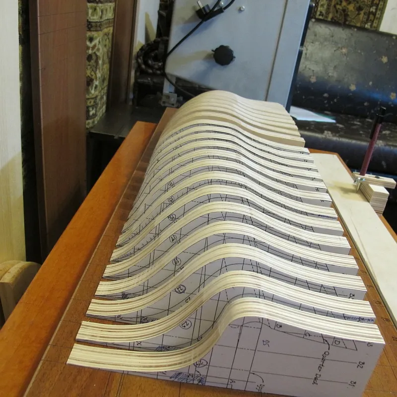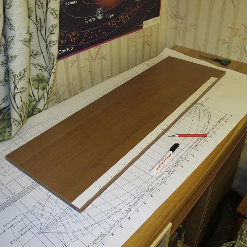 Изначально планировал делать скелет модели из американской фанеры (). Даже купил несколько листиков. Материал отличный, но между делом взял для ремонта квартиры несколько листов десятимиллиметровой шлифованной березовой фанеры ФК и дюже она мне приглянулась и ценой, и толщиной, и качеством.