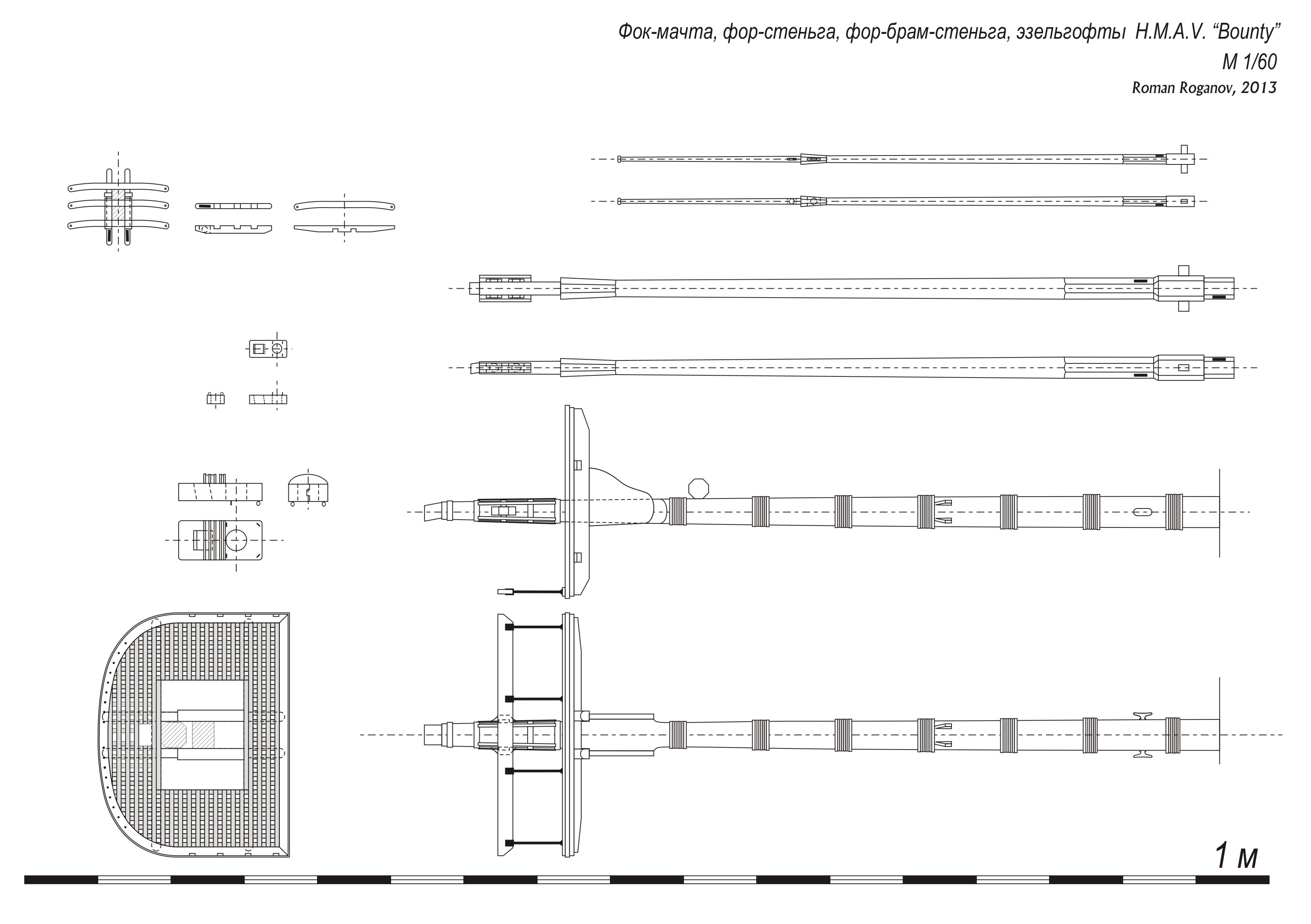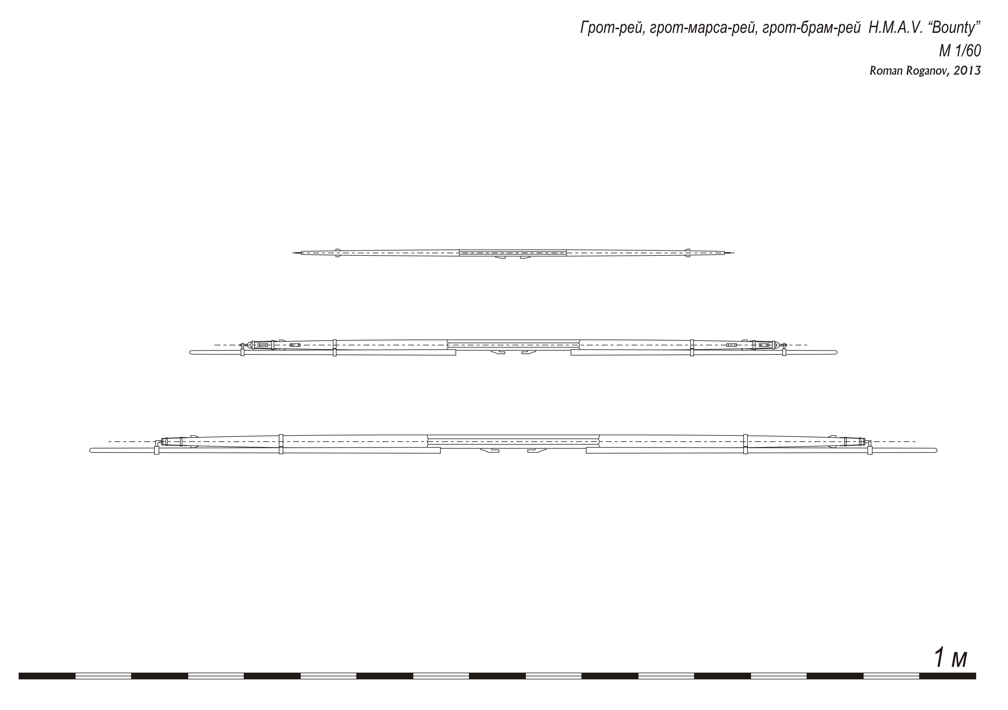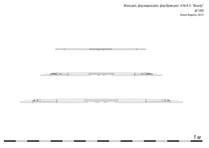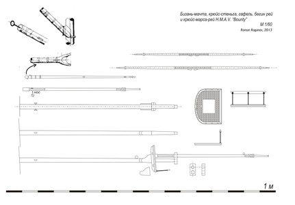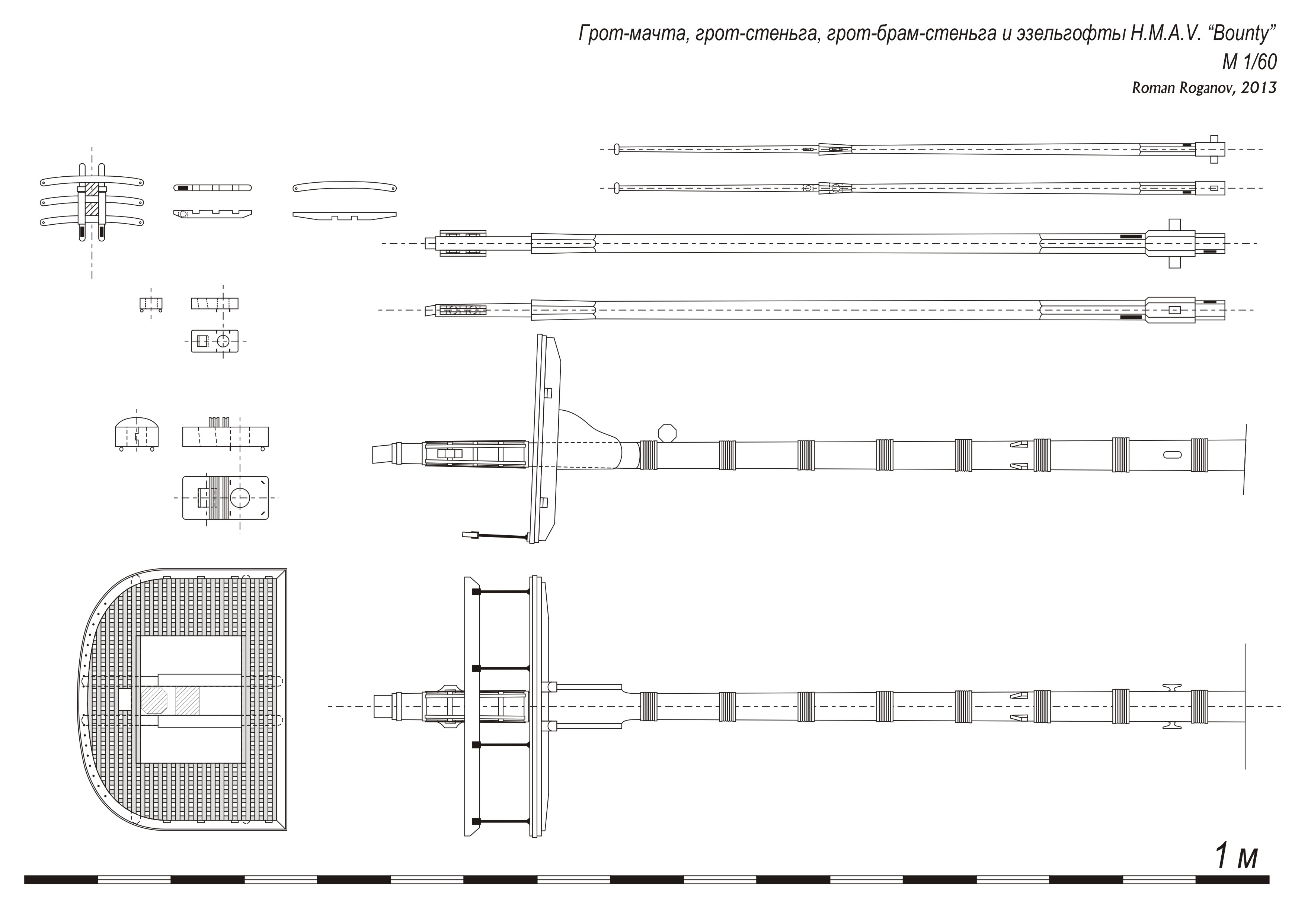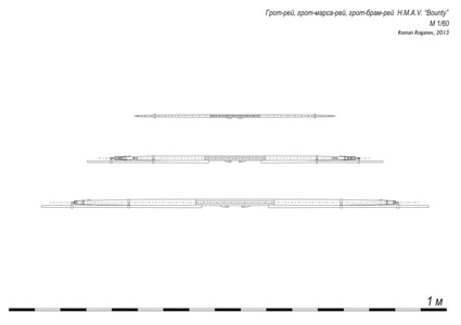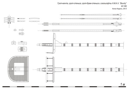 Данные чертежи были построены мной для изготовления рангоута модели Баунти от Амати. Чертежи выстроены в программе Corel DRAW 12. Для скачивания я предлагаю как оригинал чертежа в программе Corel DRAW 12, так и предлагаю скачать каждый лист по отдельности в формате jgp. Каждый лист чертежа имеет масштабную линейку, поэтому с помощью современной копировальной техники Вы легко сможете рассчитать на сколько процентов нужно увеличить распечатанное изображение, чтобы получить чертежи в интересующем Вас масштабе. Если на Вашем компьютере установлен Corel DRAW 12 и более высоких версии данного редактора, то для перевода в нужный масштаб нужно всего лишь задать на сколько процентов необходимо увеличить или уменьшить чертежи. Напоминаю, что масштаб модели Амати - 1/60, в нем и построен оригинал чертежа. К примеру, для перевода в масштаб партвокаоригинал необходимо увеличить на 20 %, набрав в соответствующем поле меню Corel 120%. Напомню, что задать увеличение нужно как по горизонтали, так и по вертикали, заполняя сразу два расположенных друг под другом поля.