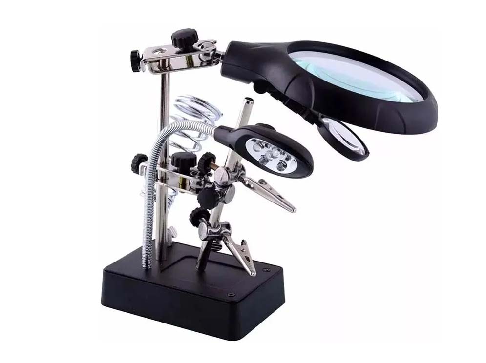 - Лупа с подсветкой – для работы с мелкими деталями. Бывает в исполнении «третья рука»