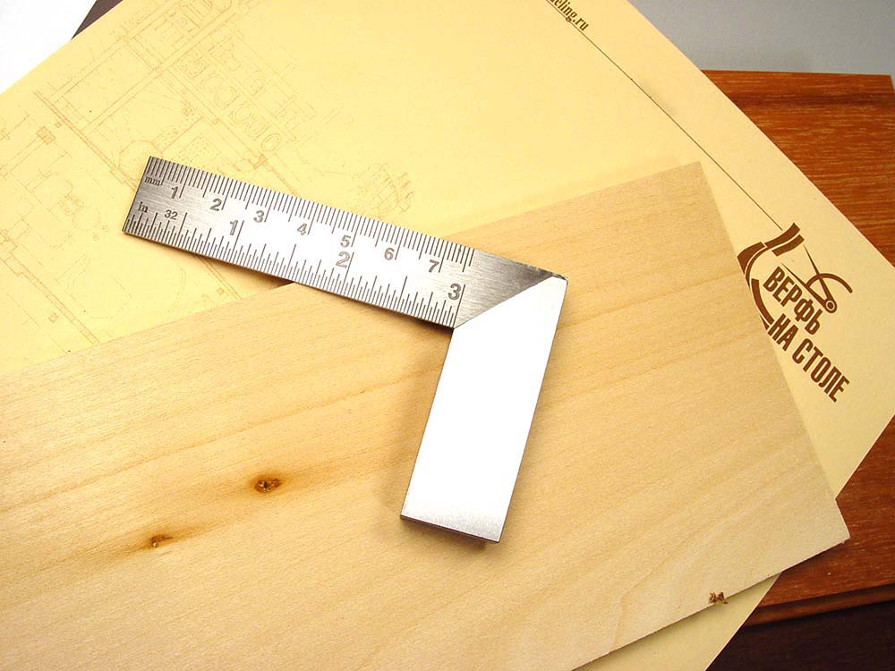- Угольник – проверка прямых углов, выставление шпангоутов относительно киля.