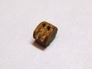 Этой сверлилкой я и сверлил отверстия для нитей. Про сверление стоит отметить, что отверстие сверлится не все сразу: сначала с одной стороны, затем с другой, на встречу, пока не получится сквозное отверстие. После того, как просверлены отверстия, ножом с лезвием №11 я наметил прорези. Я их прорезал, а не процарапывал. Делать это следует очень осторожно, стараясь не расколоть блок. Намеченные отверстия углублял иглой. Вот что получается.