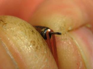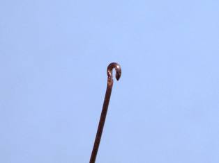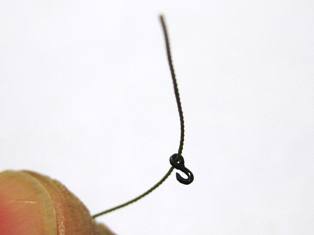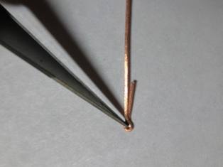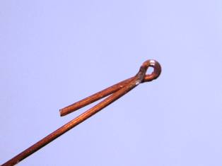 Смыкаем заготовку посредством пассатижей и пинцета. Проволока мягкая, поэтому пассатижами необходимо пользоваться осторожно, дабы не получить некий медный блин. Усилие нужно прикладывать минимальное. Пинцетом подправляем с боков, чтобы сомкнуть кольцо гака окончательно.