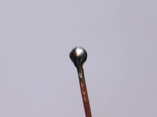 Затем пинцетом с плоскими кончиками сжимаю с двух сторон проволоку, огибая сверло.