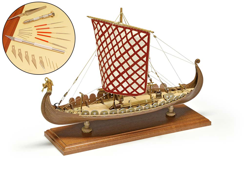 Стартовый набор это необходимый минимум для постройки модели. Ничего лишнего, только "жизненно важные" инструменты, проверенные годами. Сюда, как правило, входят обязательные нож и сверлилка с наборами лезвий и свёрл, пинцет и наждачка/надфили для ошкуривания деревянных деталей. Все те инструменты, которые первым делом заводятся у любого моделиста. Без такого набора собрать модель просто не получится, поэтому это первый выбор для начинающих судомоделистов.
