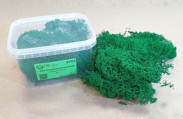 Также специально для диорам появился модельный мох - натуральный ягель, стабилизированный в глицерине для сохранения свойств и предотвращения высыхания. Не теряет своих свойств в течение многих лет. Идеально подойдёт для придания завершённого живого вида вашим моделям или подставкам.