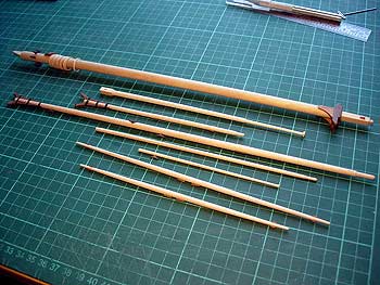 С рангоутом не было никаких особенностей. Некоторая кривизна отдельных круглых заготовок легко была компенсирована их запасом по размеру и количеству.