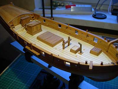 Немного об инструменте. Как всегда хитом был модельный нож №11. Для дерева использовались интенсивно: утюжок, шкурники от Amati, минидрель в станке от Proxxon с гибким валом. Очень пришлись ко двору и были интенсивно востребованы цилиндрическая и дисковая шкурки для минидрели. Конечно же, пинцеты для такелажа, разные зажимы, прищепки и подставка с зажимами «третья рука» (от радиолюбителей). Набор американский, поэтому очень желательна металлическая линейка с дюймовой разметкой. Открытием, хотя и запоздалым, стали кусачки (ножнички) для фототравленки - ими очень удобно работать с такелажем. Вещица весьма дорогая, но, по-моему, того стоит. Огорчили круглогубцы – не смог найти хорошие с высокой боковой устойчивостью, хотя перепробовал несколько штук. Кроме перечисленного, использовалось огромное множество не упомянутого инструмента, самодельных простеньких приспособлений и кондукторов для сборки.