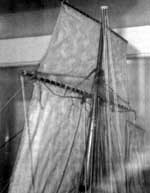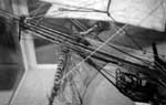 Вид на грот-брам-стеньгу и грот-бом-брамсель. Обратите внимание на фал флага, идущий на клотик грот-мачты. |