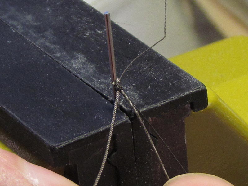 на строп накладываем нить из которой будем вязать бензель в виде такой же, как и у стропа петли