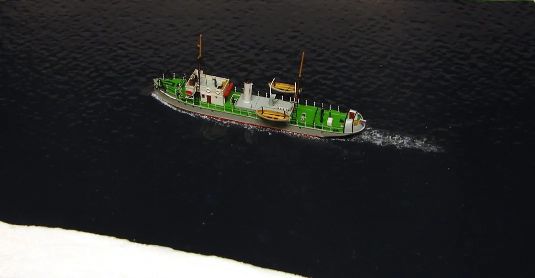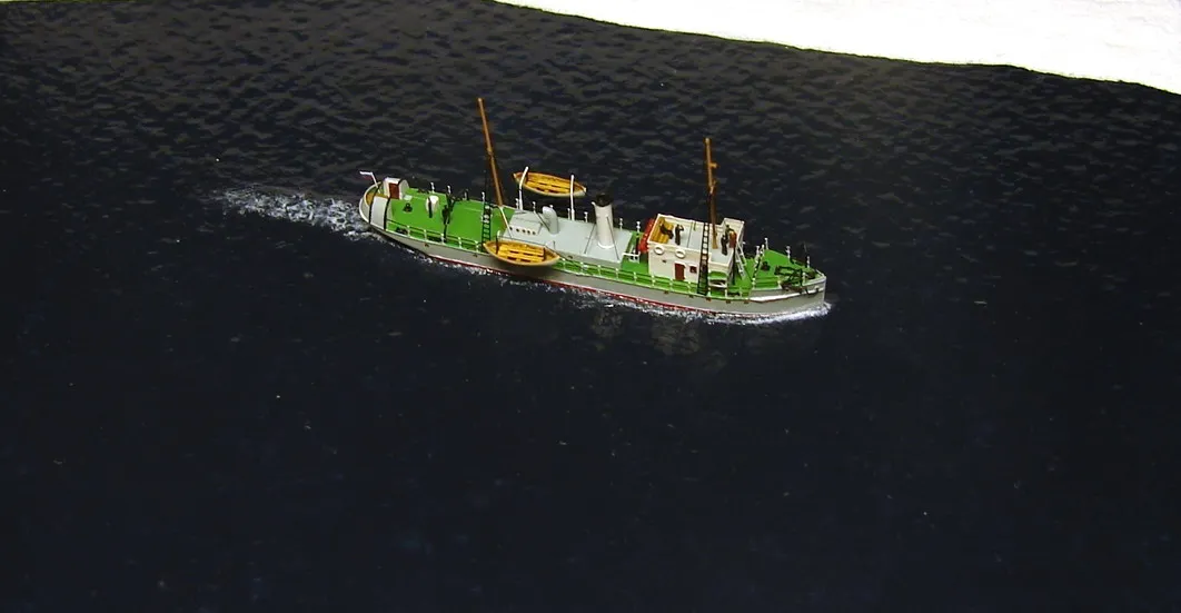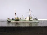 На диораме попытался показать кусок льдины, а на бортах корпуса модели небольшое облединение. Первый опыт не совсем удачен, но на фото и вживую - это не очень критично.