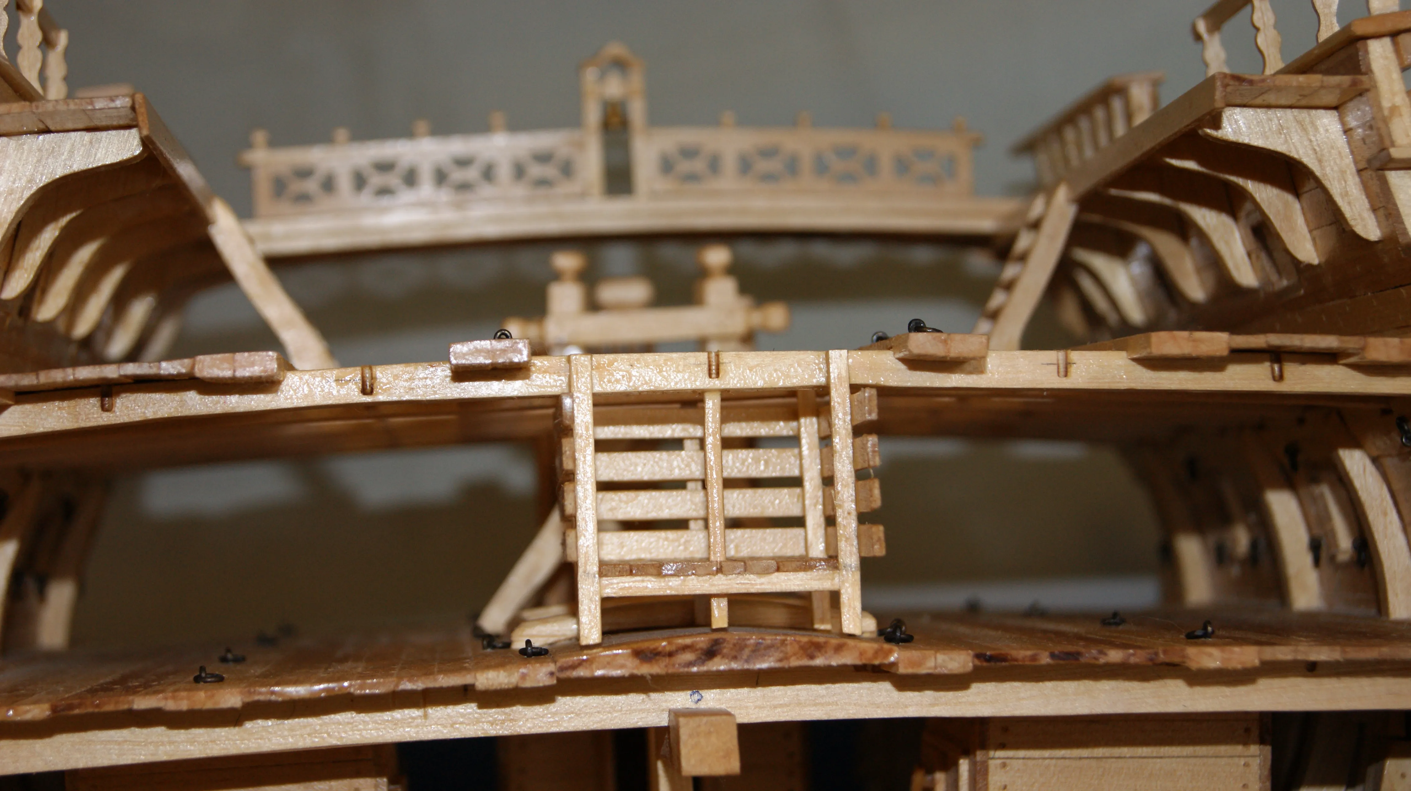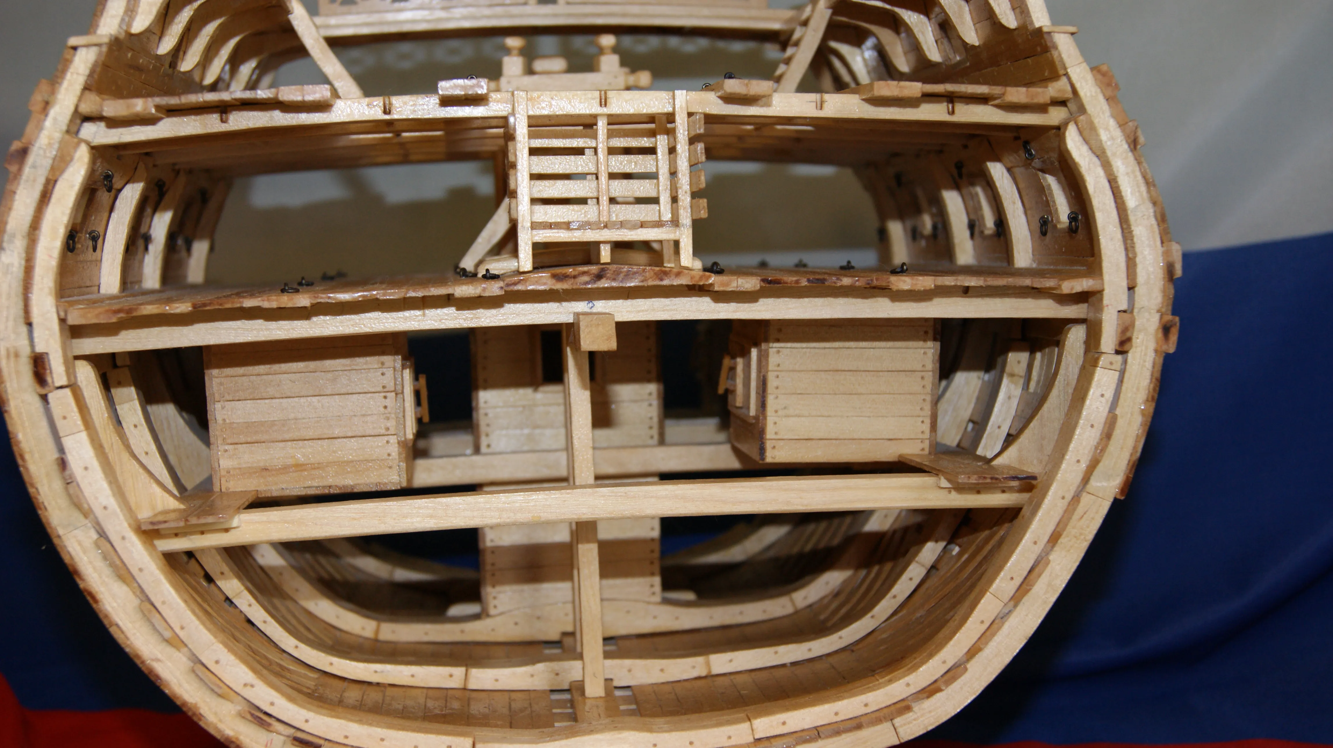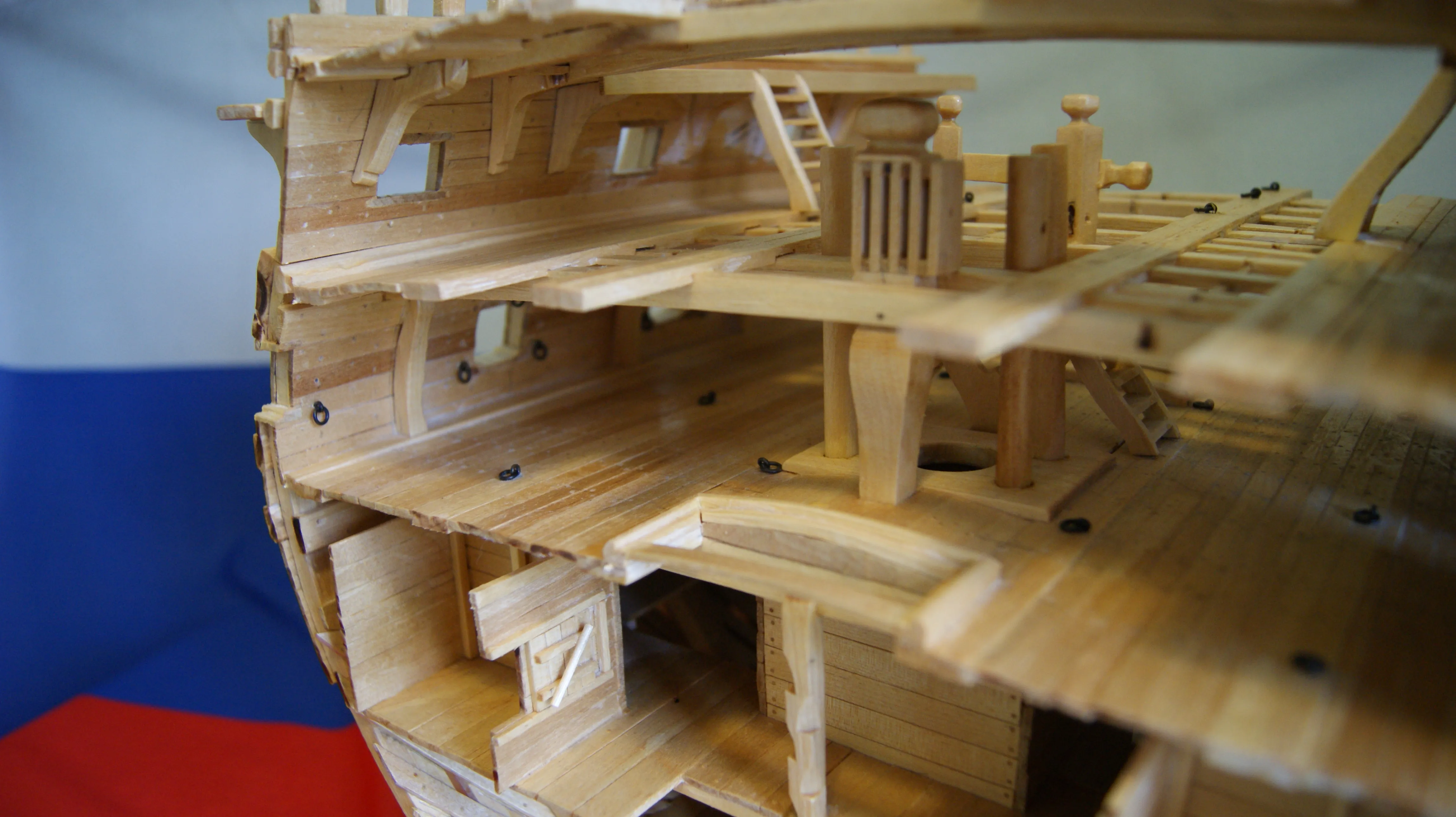 Корабль выполнен в разрезе, для того, что увидеть всю мощь и красоту судна. С точностью воссозданы все трюмные отсеки,