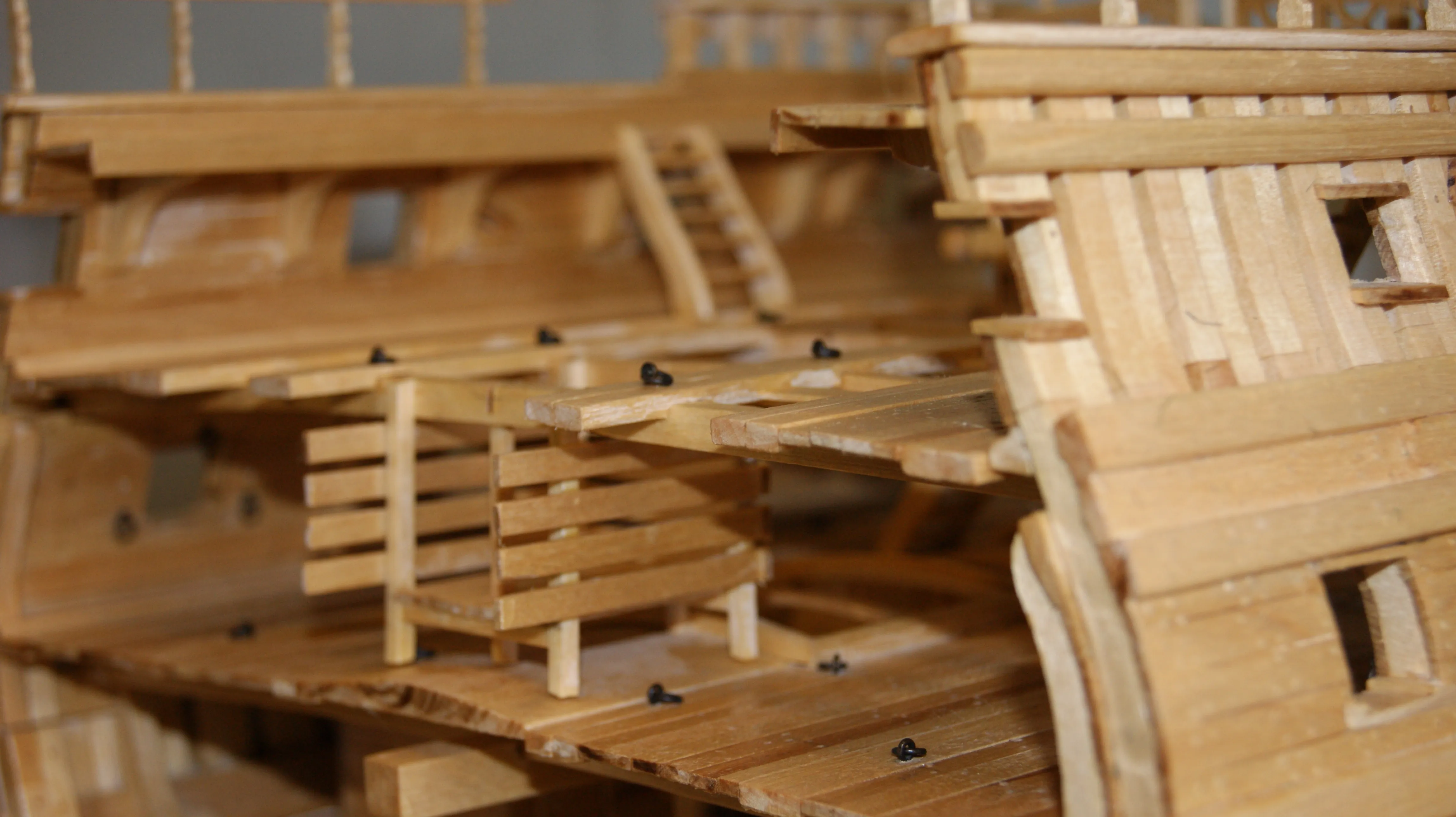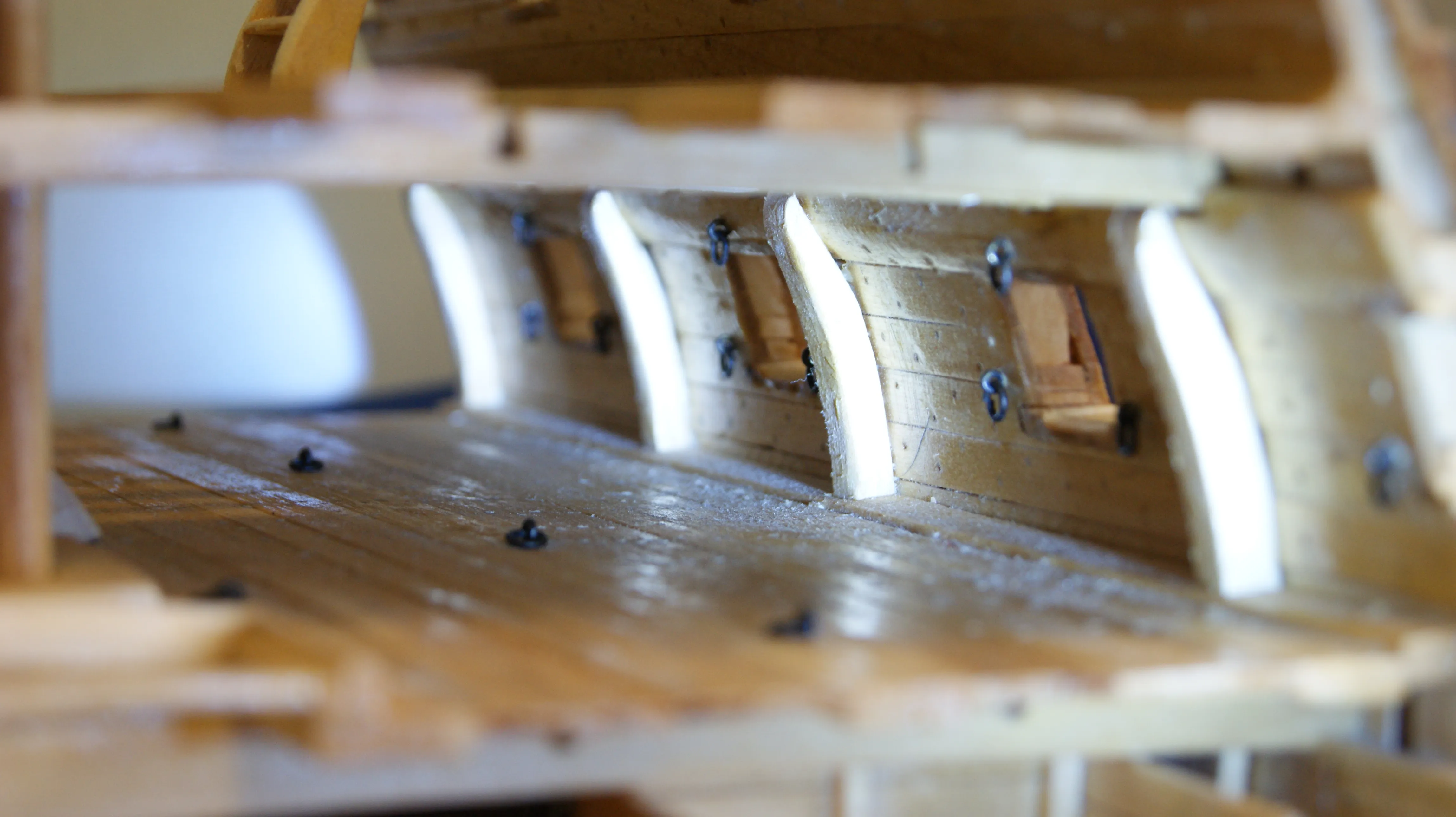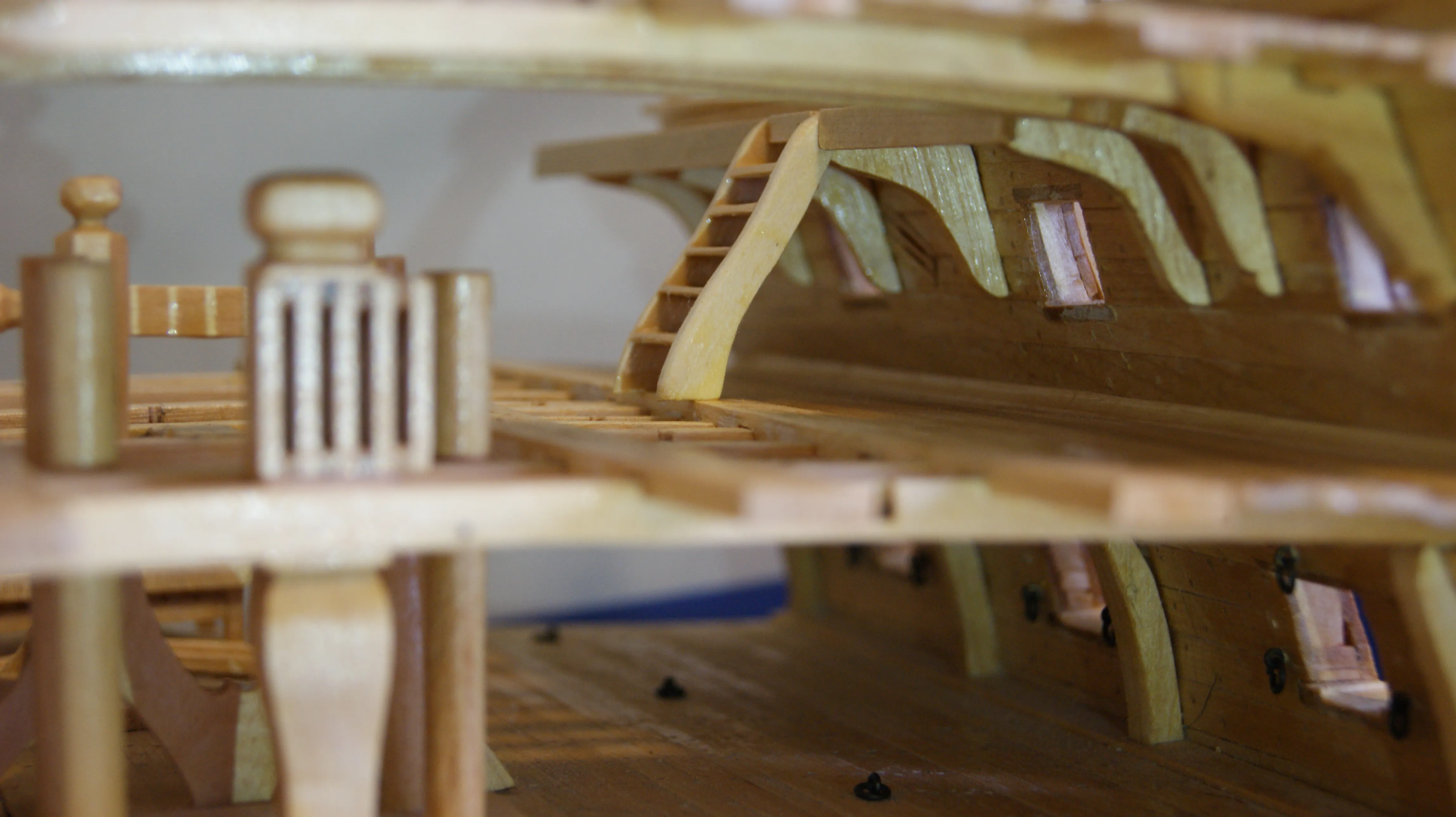 Корабль выполнен в разрезе, для того, что увидеть всю мощь и красоту судна. С точностью воссозданы все трюмные отсеки,