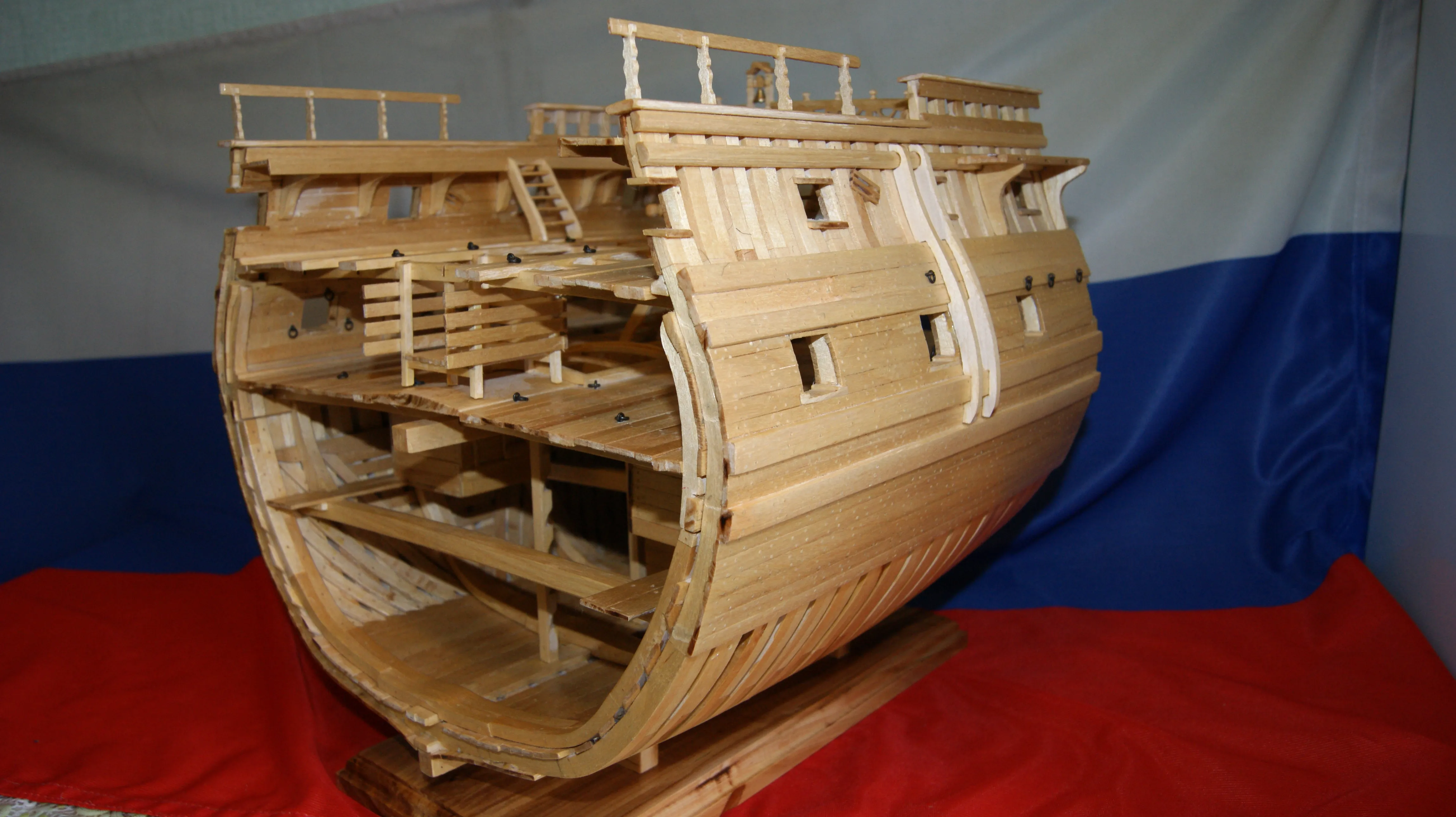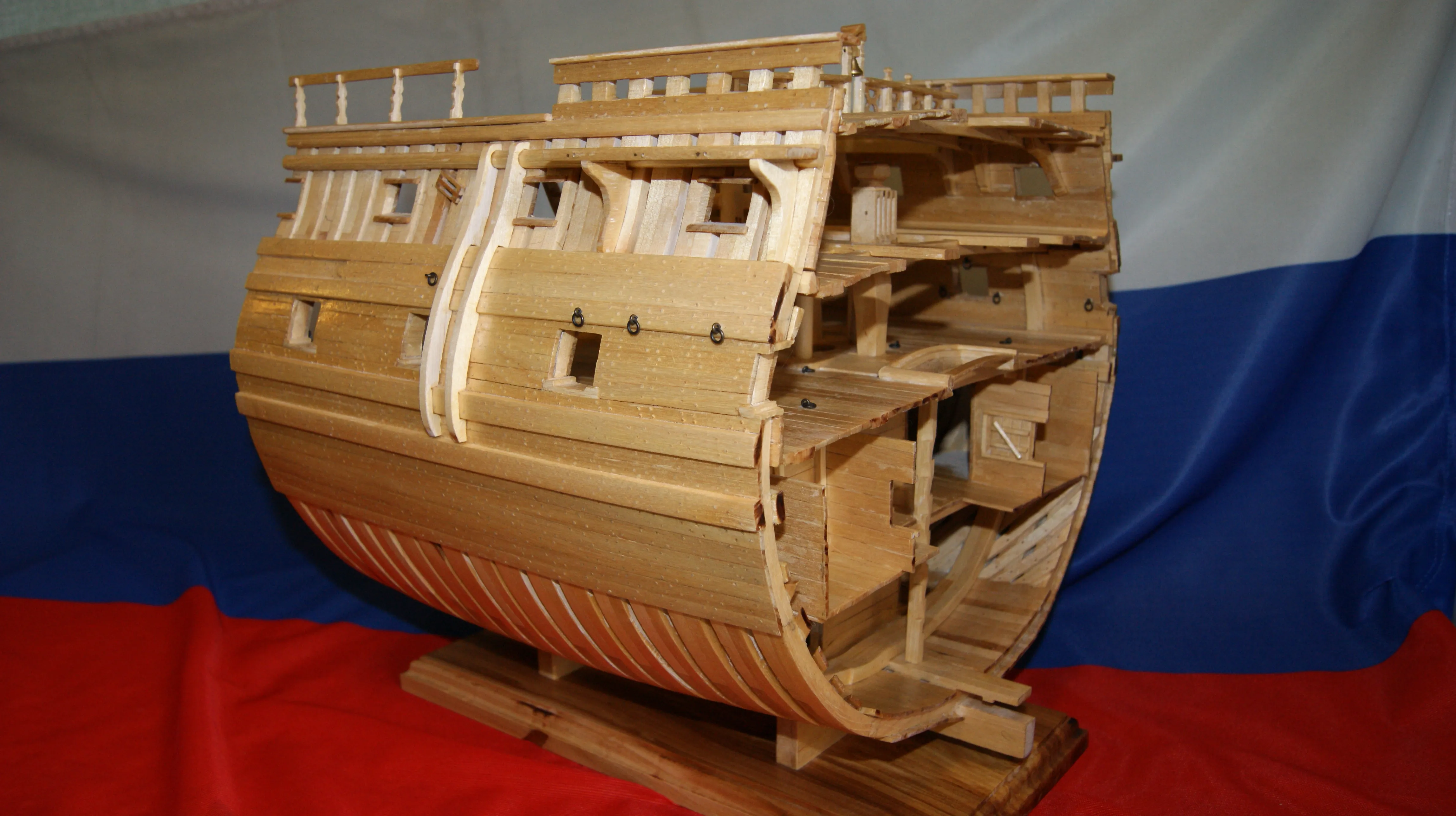 Данная модель корабля сделана из берёзы. При построении корабля использовал информацию с различных сайтов, в том числе «Верфь на столе».