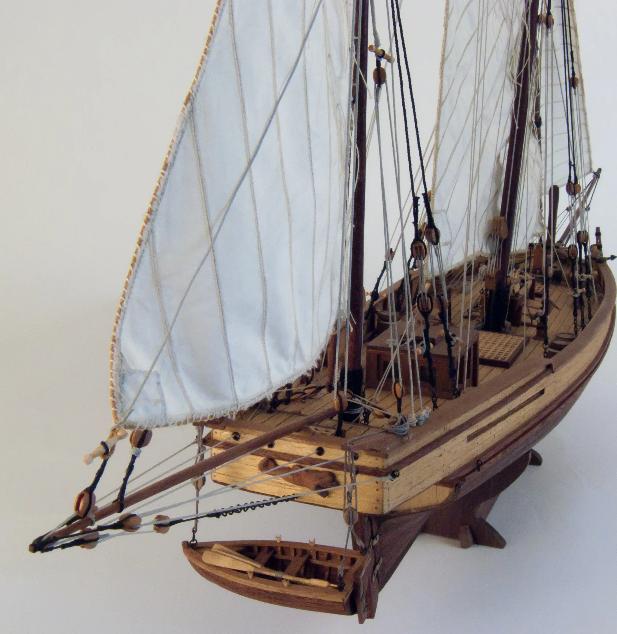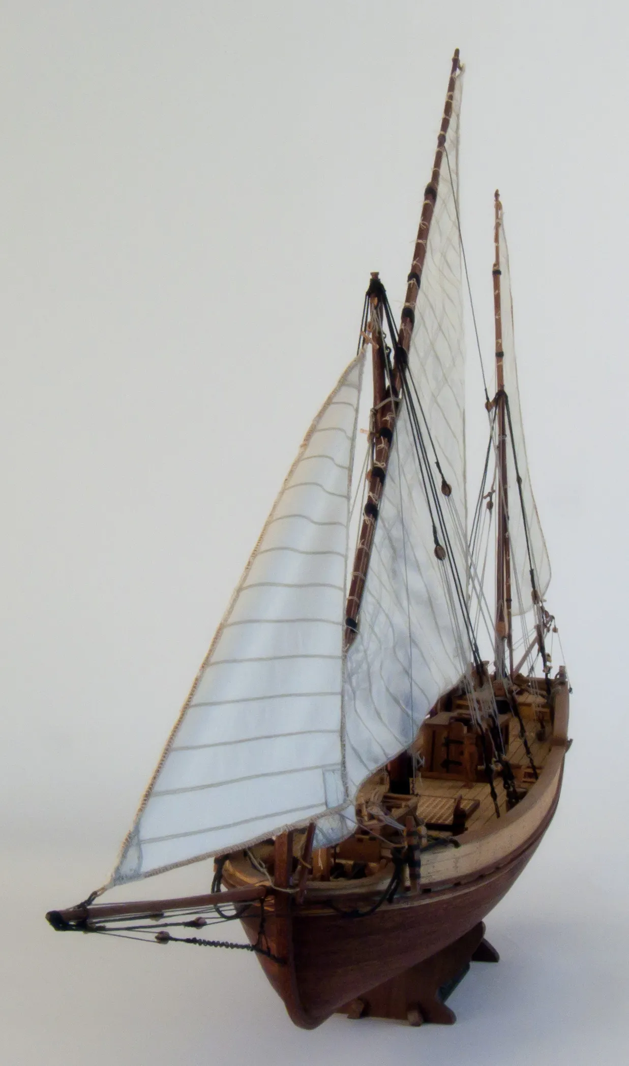 Описывать особо нечего. Средиземноморская феллука, делали таки феллуки сотню лет, и вроде как и до сих пор такие плавают. Обыкновенное, прибрежное, грузопассажирское судно, экипаж обычно всего несколько человек. В наборе заявлен масштаб 1:70, но по всем характеристикам выходит 1:50 - чего я и старался придерживаться. По мере продвижения строительства все больше отклонялся от инструкции в наборе, к чертежам от Xavier Pastor Quijada, которые были приобретены на: