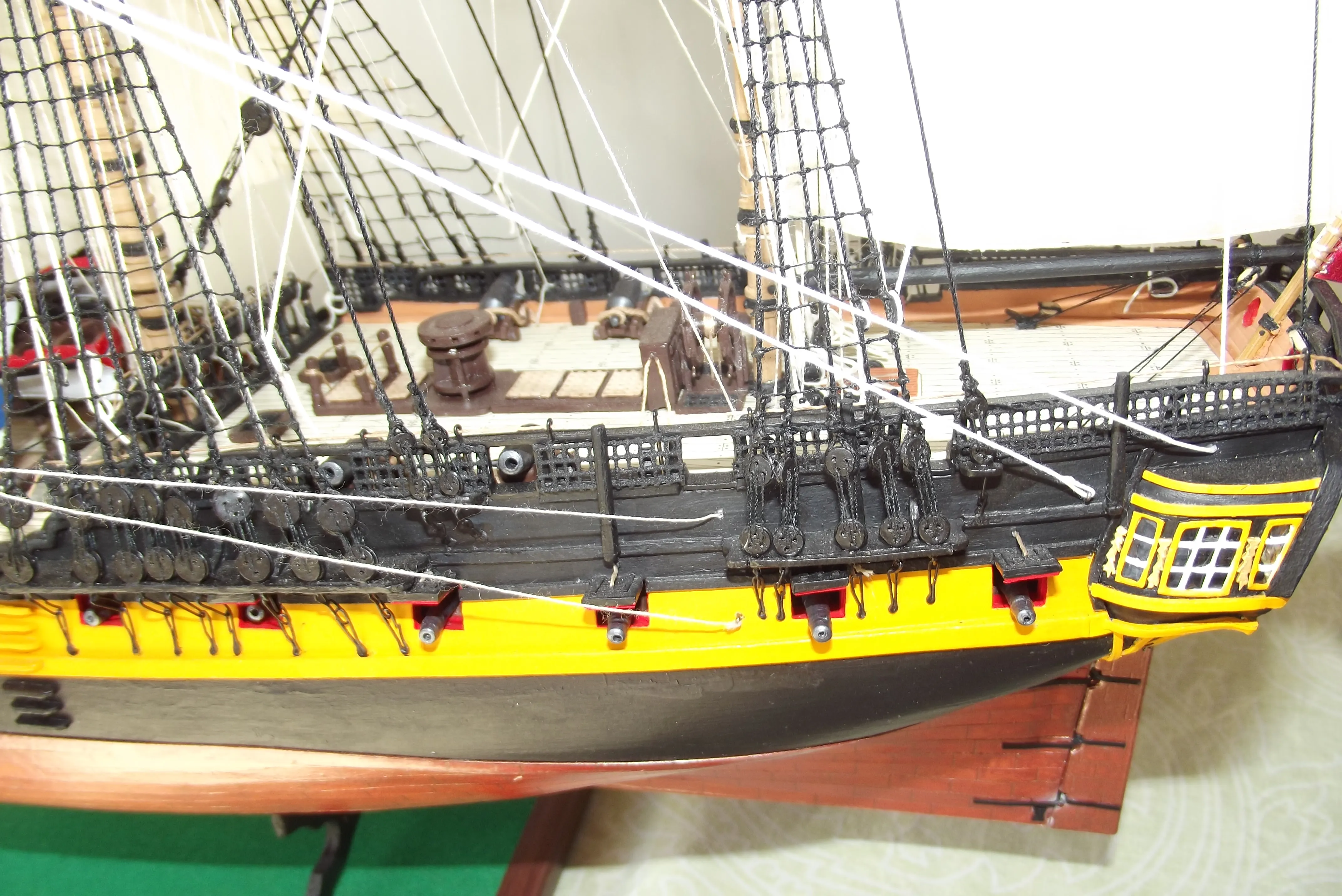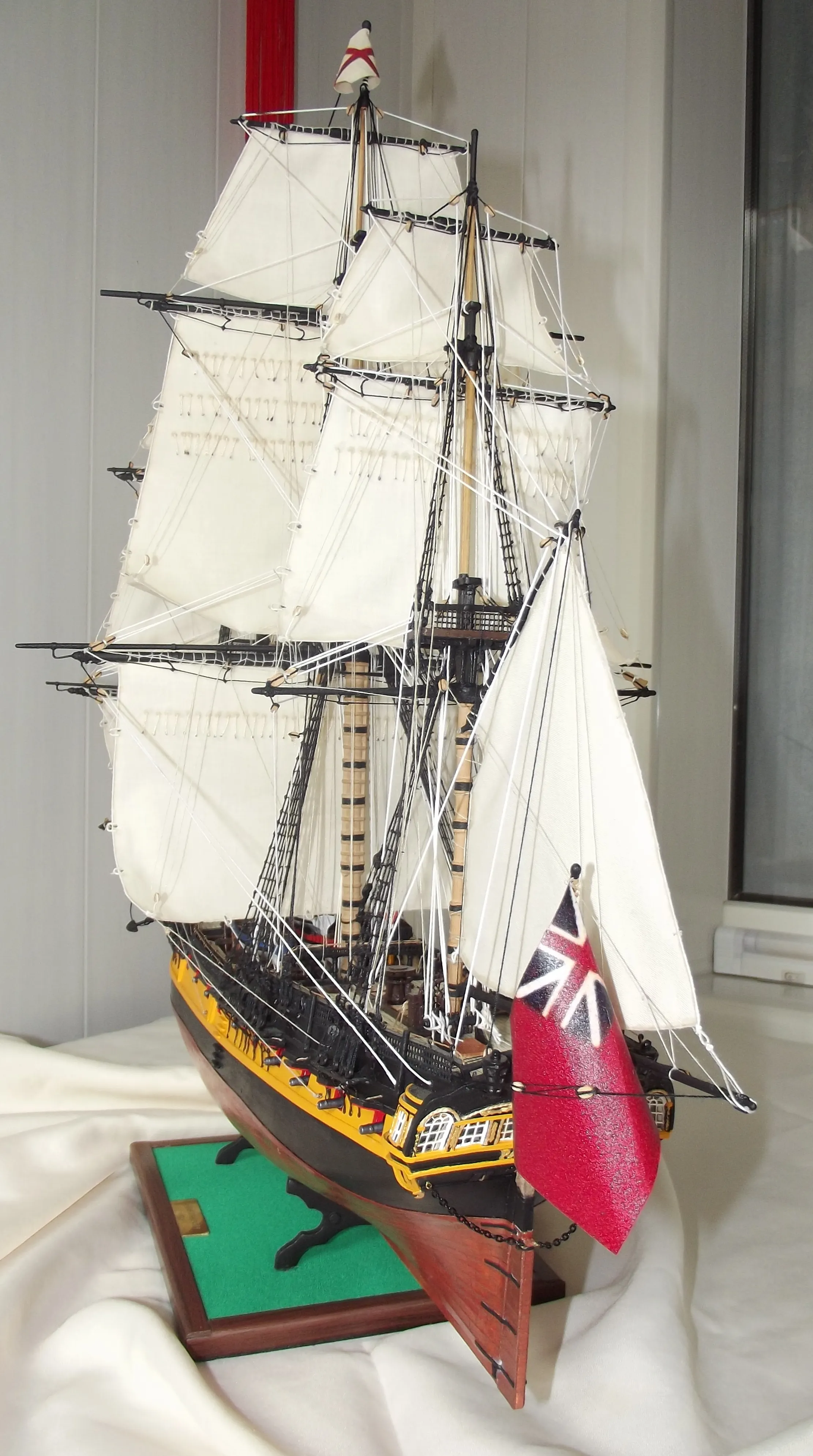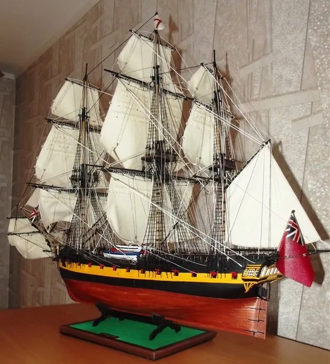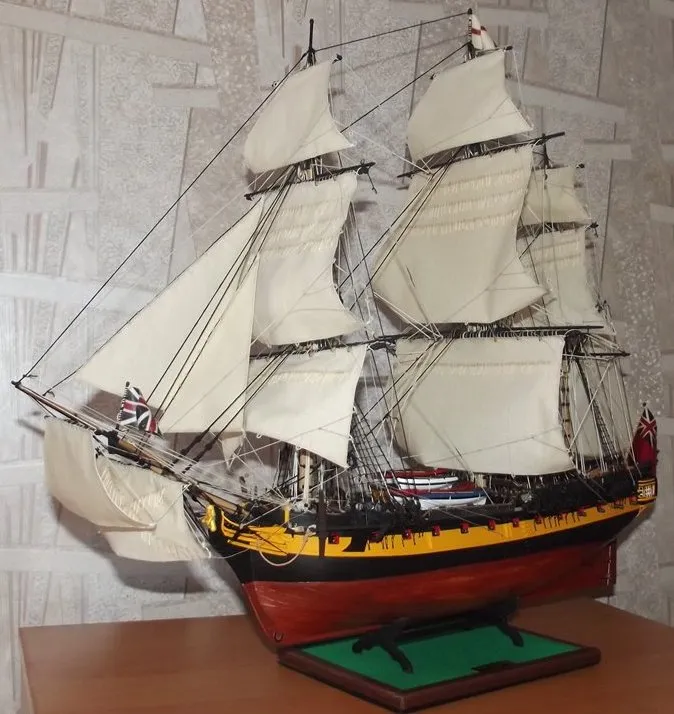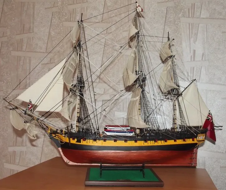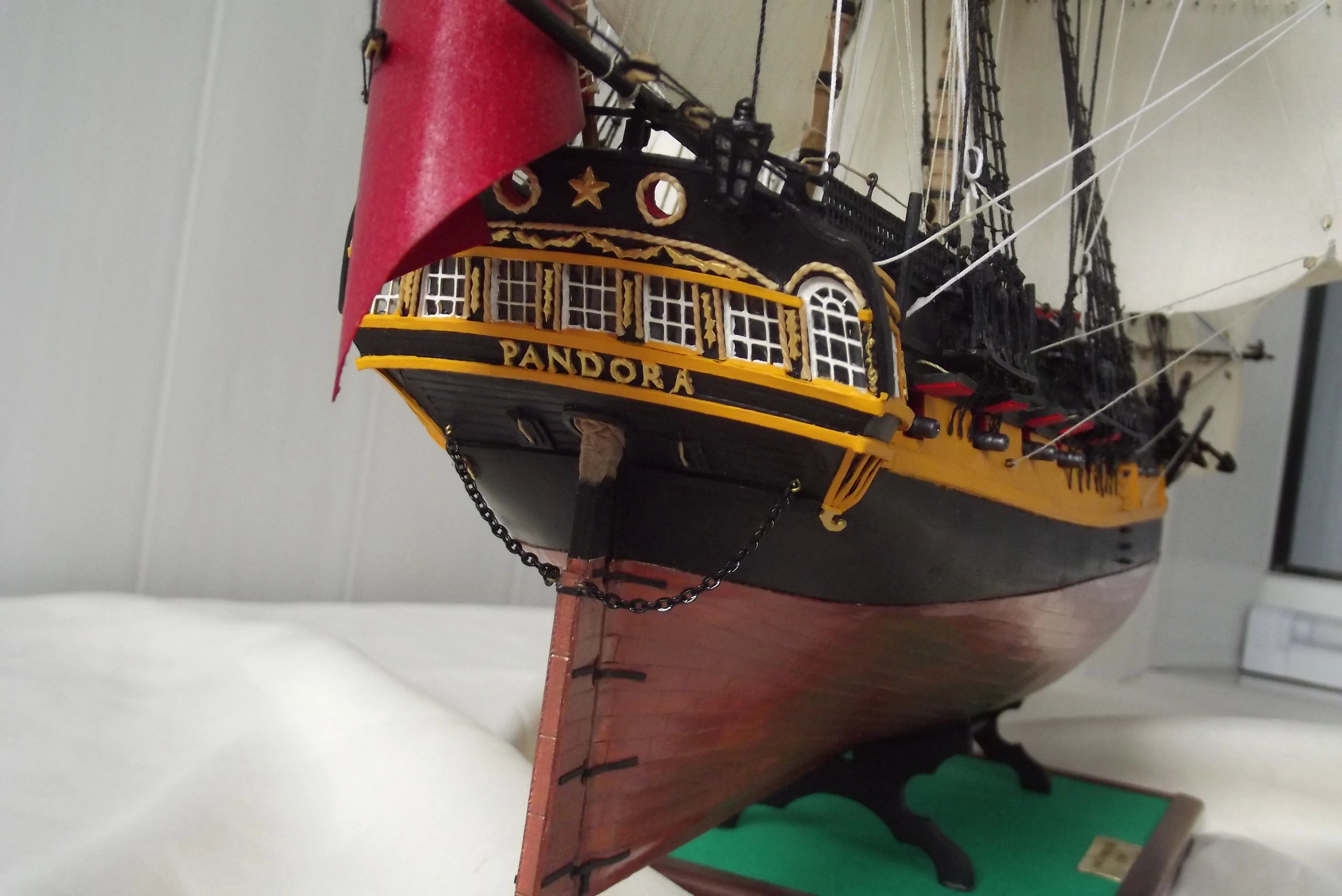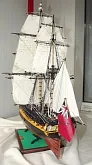 Представляю Вашему вниманию модель HMS "Pandora". Работа над моделью велась около 5 месяцев. За основу взят №21 Шипярда HMS "Cleopatra", а также книга "Anatomy of the ship - The 24-gun Frigate Pandora 1778". Применялись также заготовки парусов для HMS "Mercury" от Шипярда, а также блоки и юферсы от этого же издательства. Пушки литые в гипсовую форму (лил первый раз, окрашены краской "оружейная сталь"), краски акрил "Хома", клей Момент столяр и супер момент гель, момент кристал. Подставка дерево, таблички - гравированая латунь.