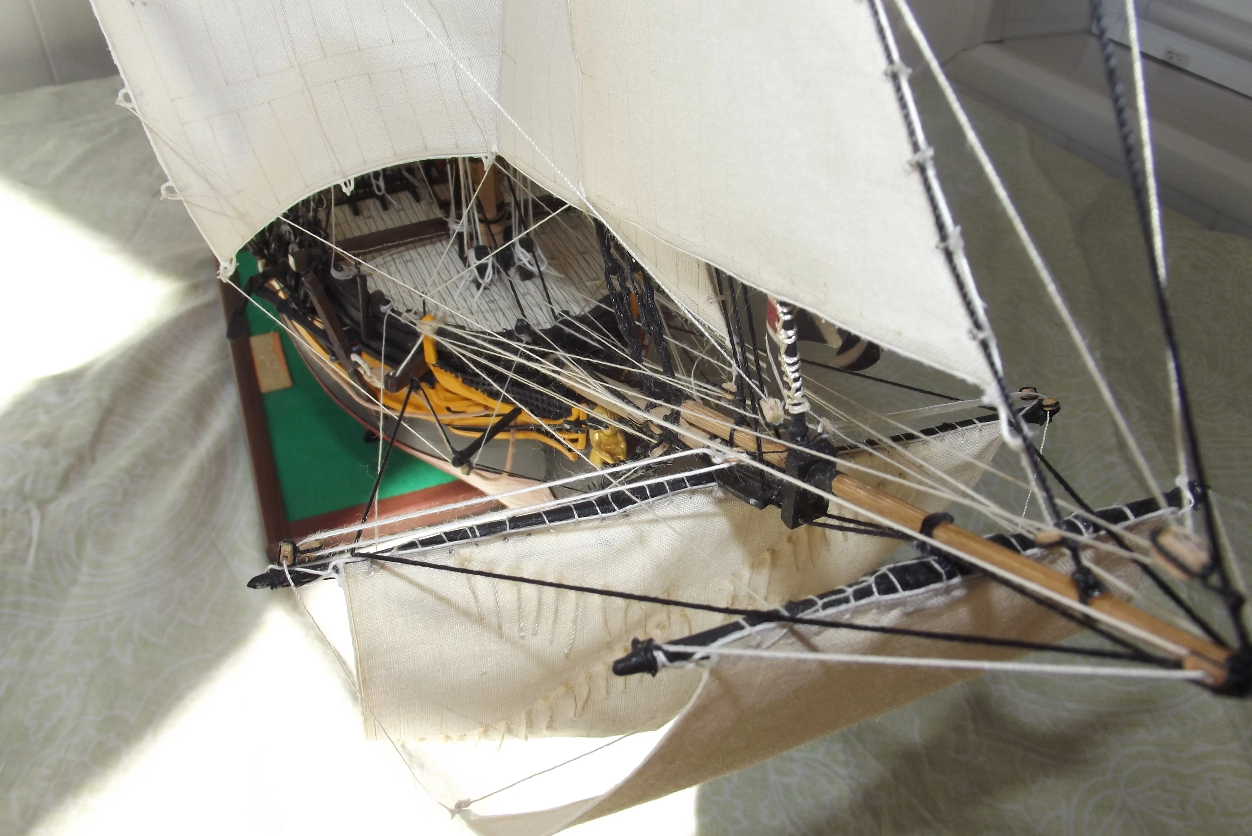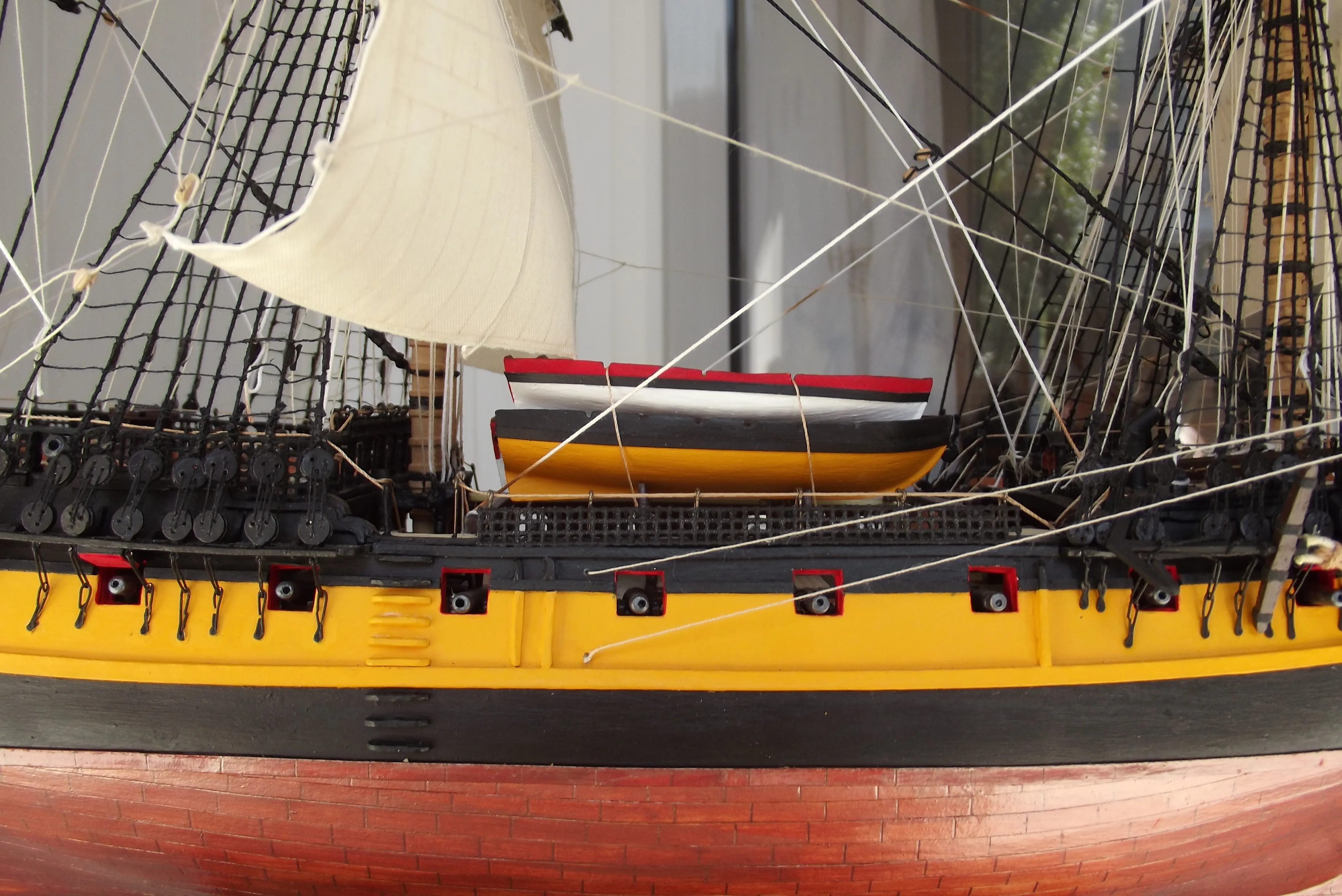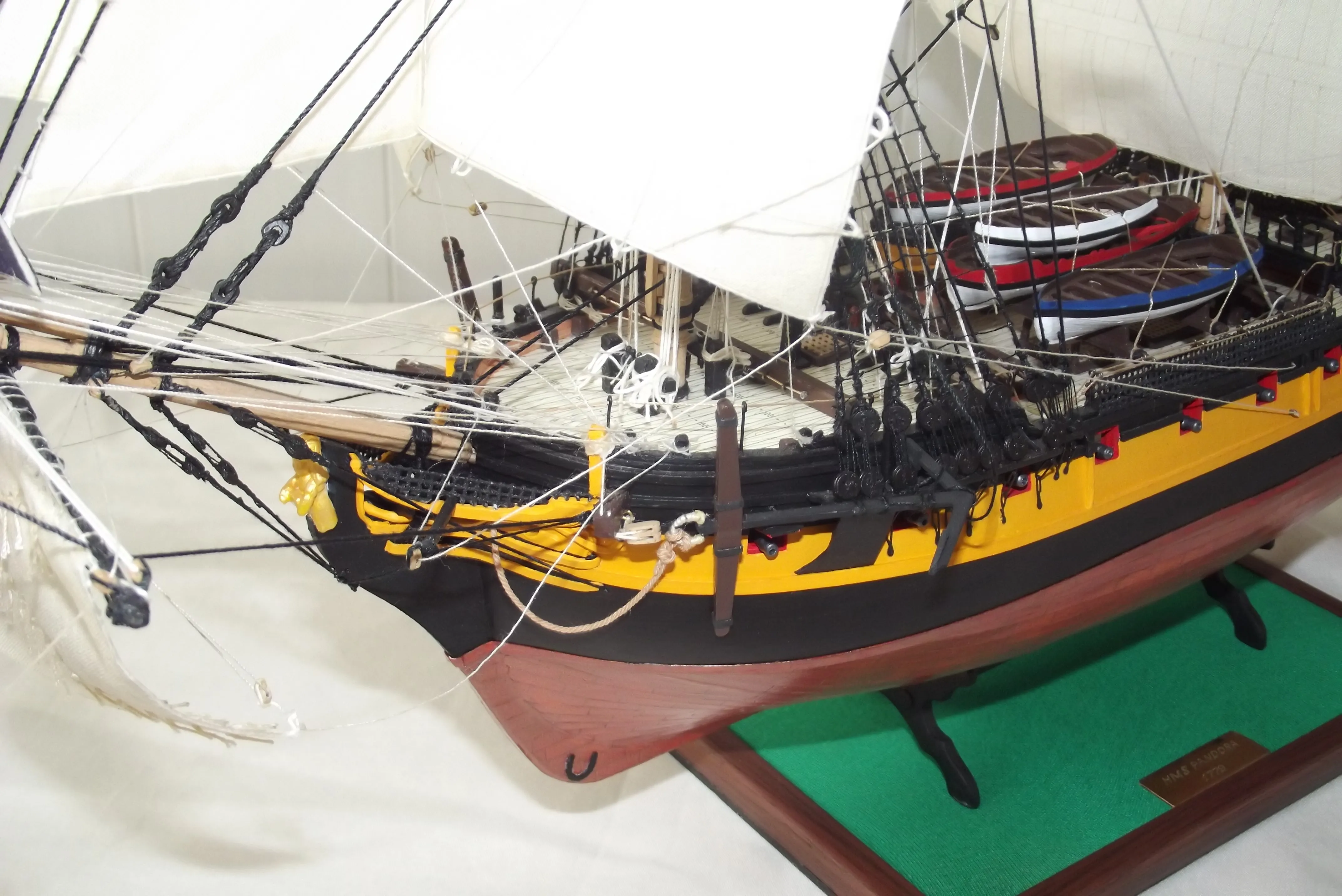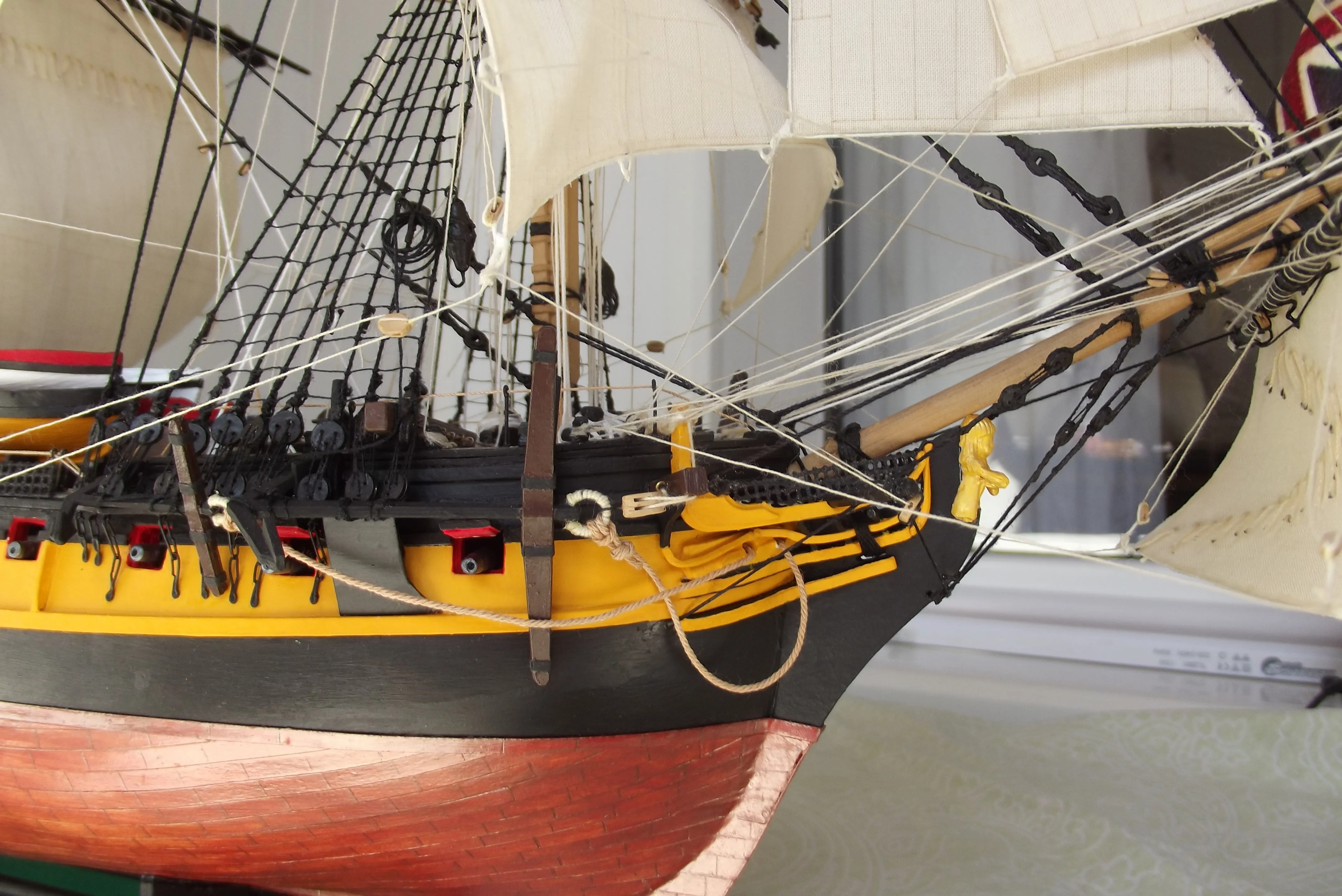 Представляю Вашему вниманию модель HMS "Pandora". Работа над моделью велась около 5 месяцев. За основу взят №21 Шипярда HMS "Cleopatra", а также книга "Anatomy of the ship - The 24-gun Frigate Pandora 1778". Применялись также заготовки парусов для HMS "Mercury" от Шипярда, а также блоки и юферсы от этого же издательства. Пушки литые в гипсовую форму (лил первый раз, окрашены краской "оружейная сталь"), краски акрил "Хома", клей Момент столяр и супер момент гель, момент кристал. Подставка дерево, таблички - гравированая латунь.
