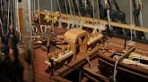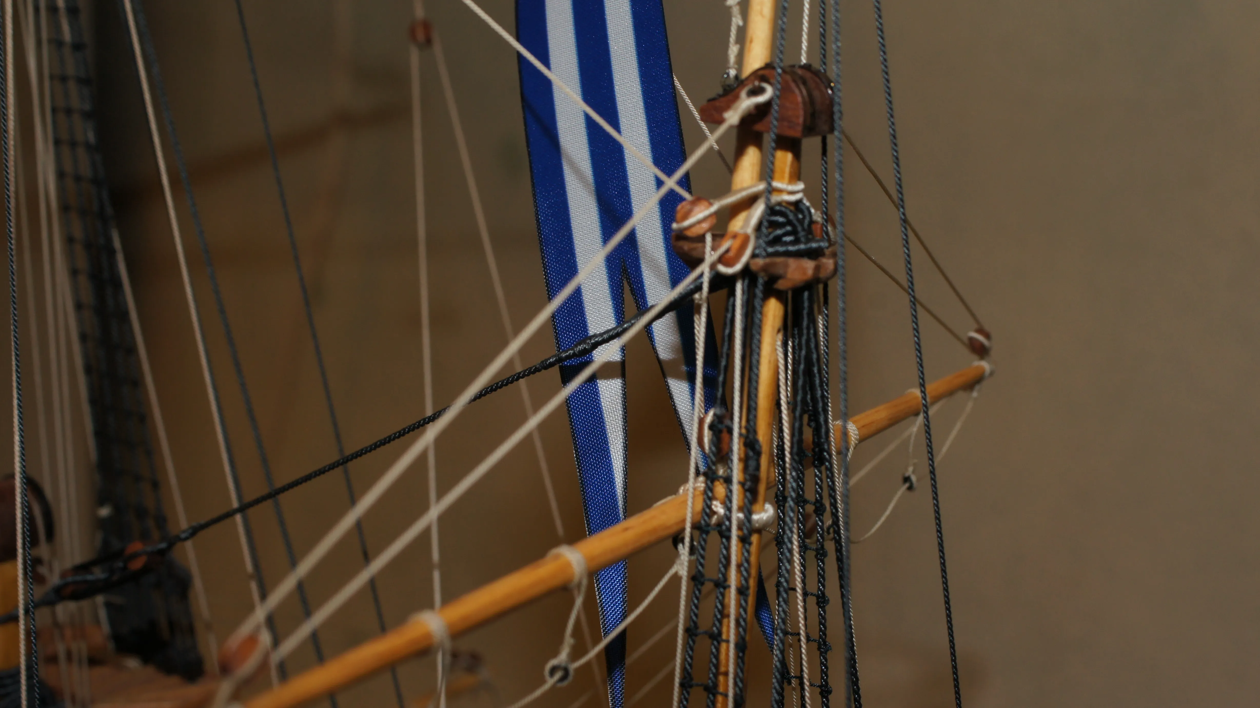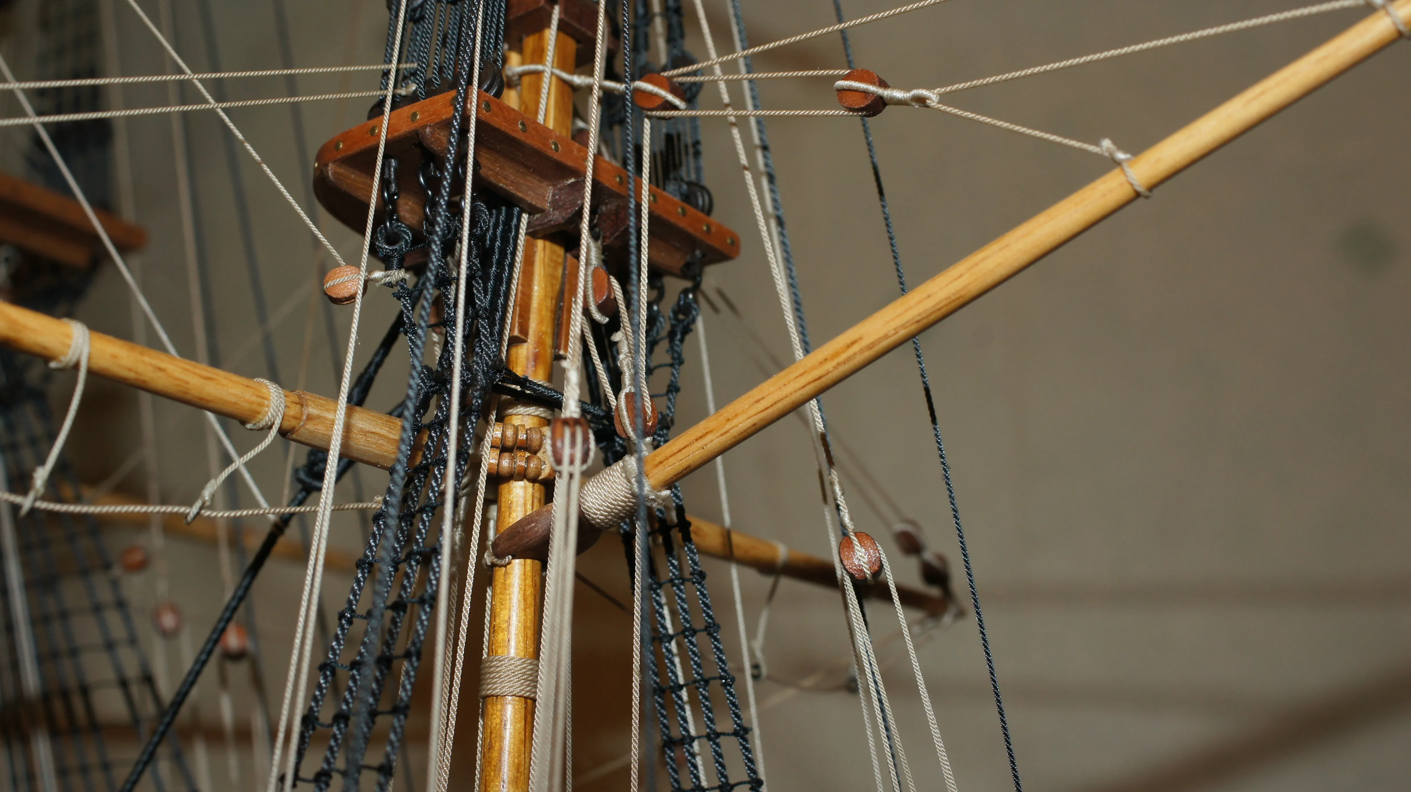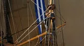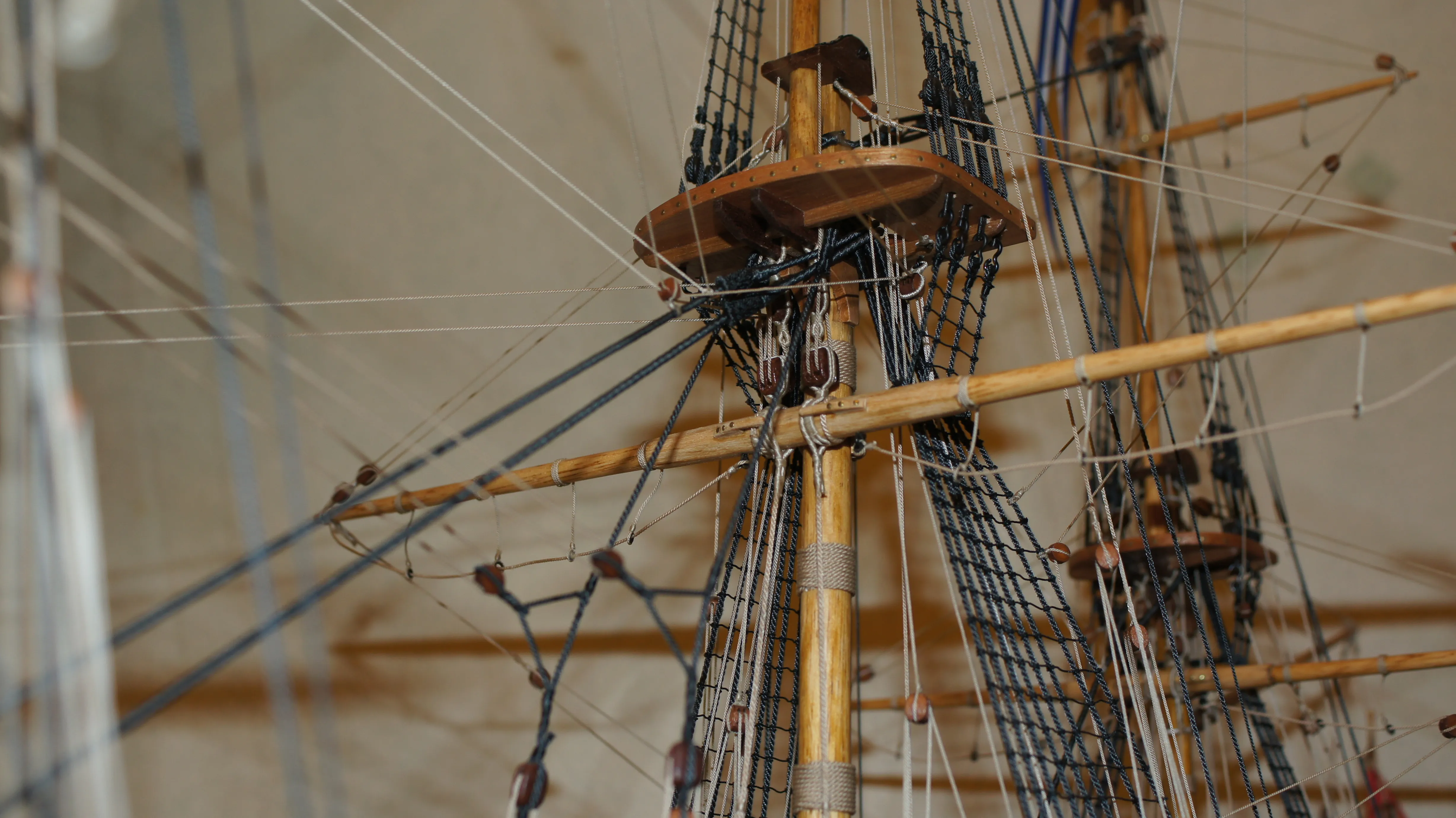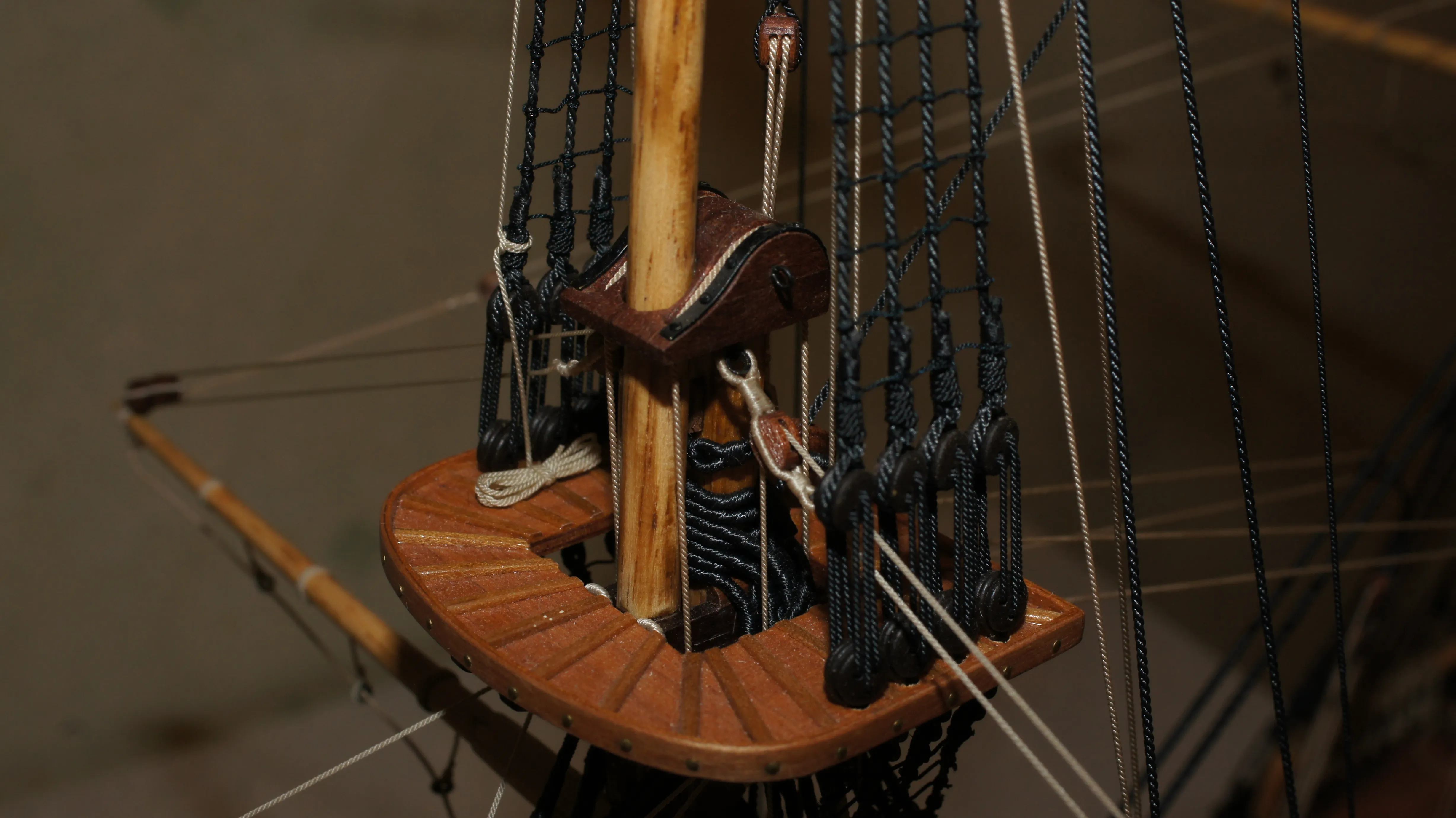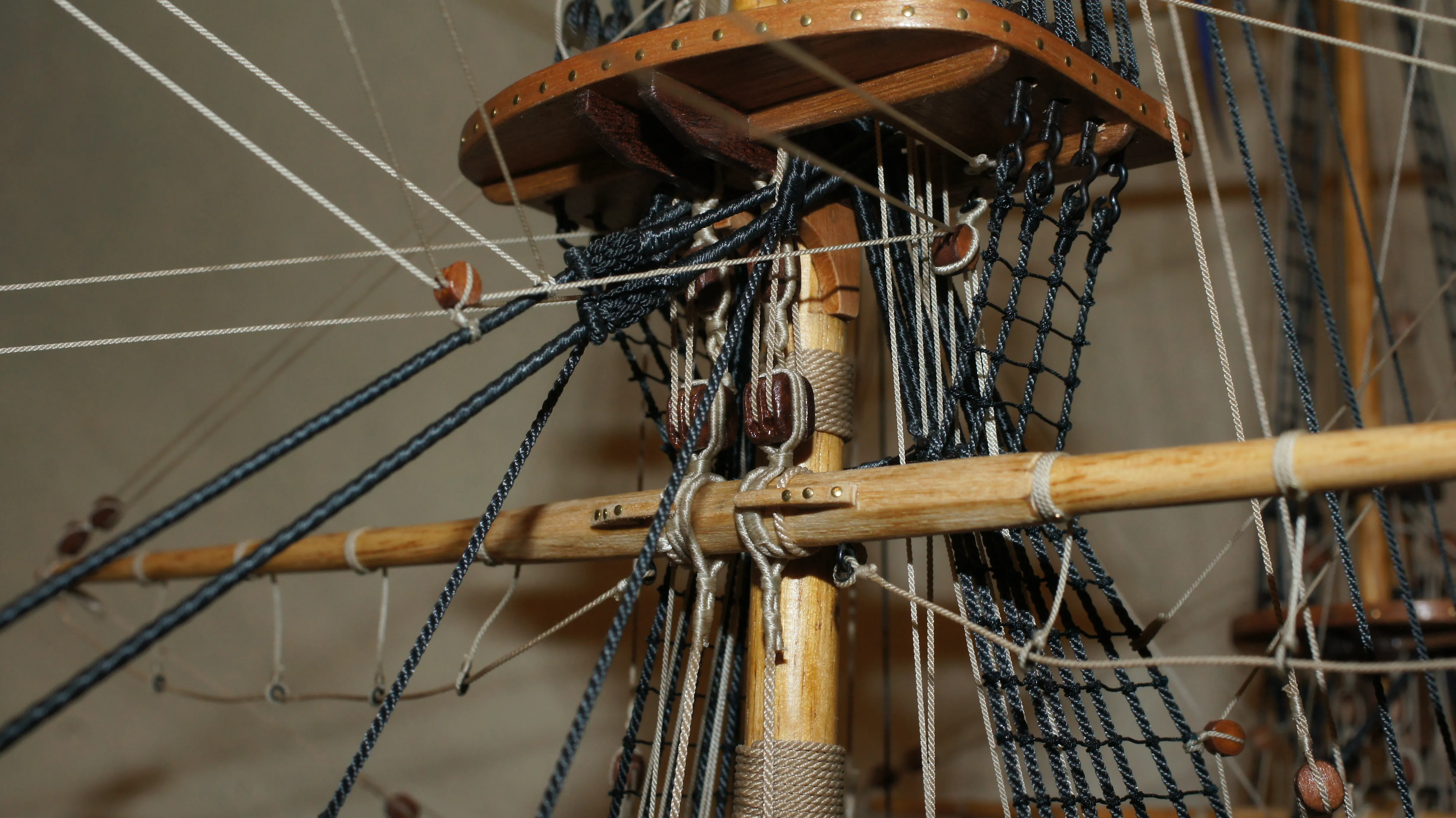 Модель фирмы COREL изготовлена в масштабе 1:75, длина 840мм, высота 705 мм, ширина 290 мм. Набор постигли глобальные переделки. В первую очередь прорезал нижнюю палубу. Потом довёл до ума пушки: сделал пушечные и откатные тали, противооткатный брюк, оковал железом колёса. В палубном настиле каждая точка – деревянный гвоздь. Добавил к набору шлюпки и кормовые фонари. Нижняя шлюпка – покупной набор, верхняя с вёслами - собственное творчество. Заменил все блоки , эзельгофты и нитки на кручёные канаты. К якорям добавил томбуи. В конце повесил новые флаги и вымпелы приобретённые на сайте «IMHOBBY.ru». Используемая литература: О.Курти «Постройка моделей судов», К.Х.Марквардт «Рангоут, такелаж и паруса судов XVIII века».