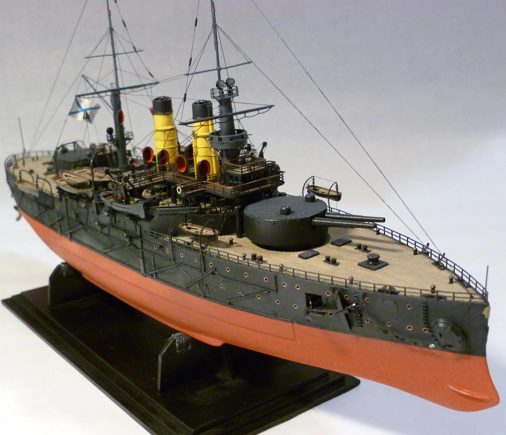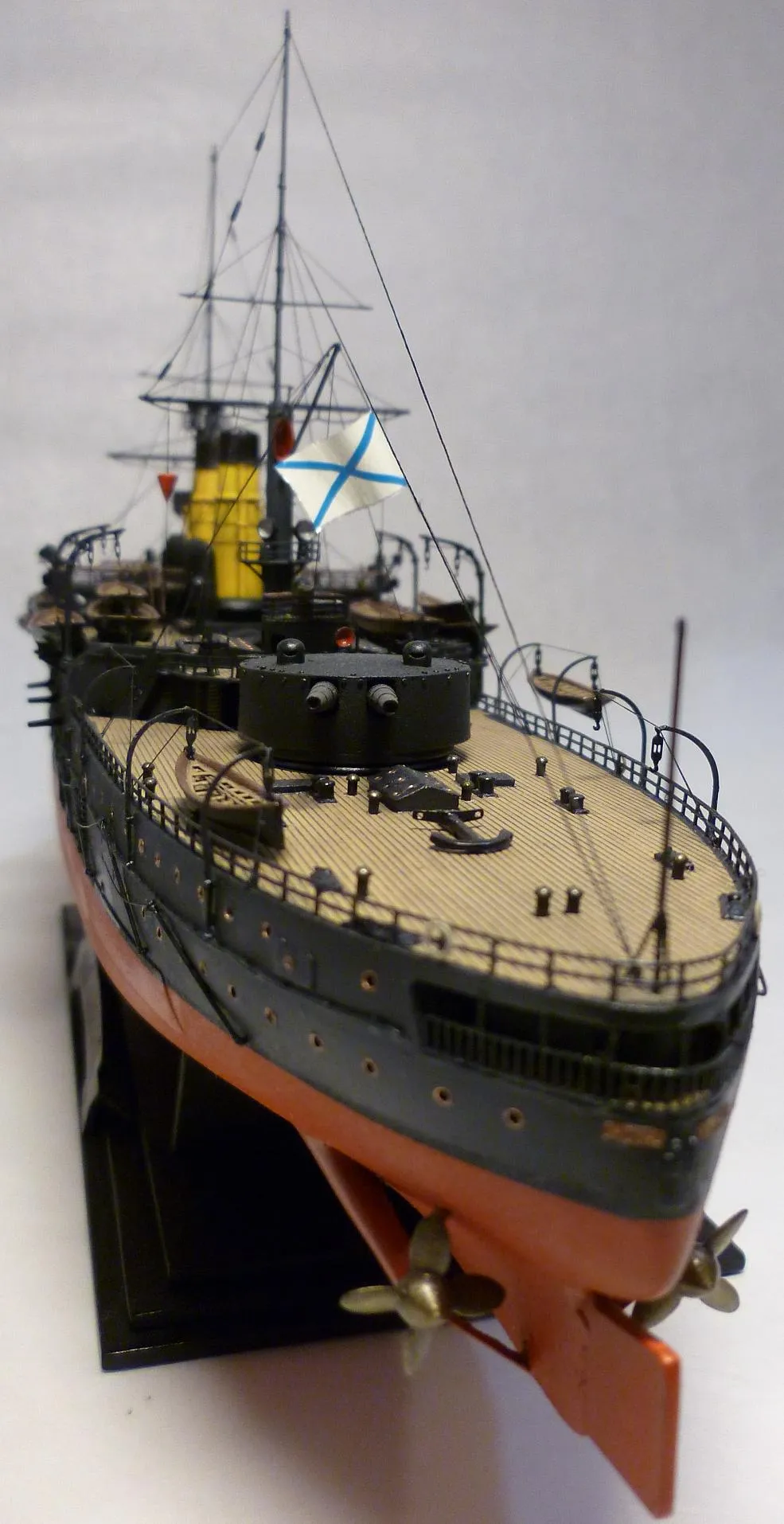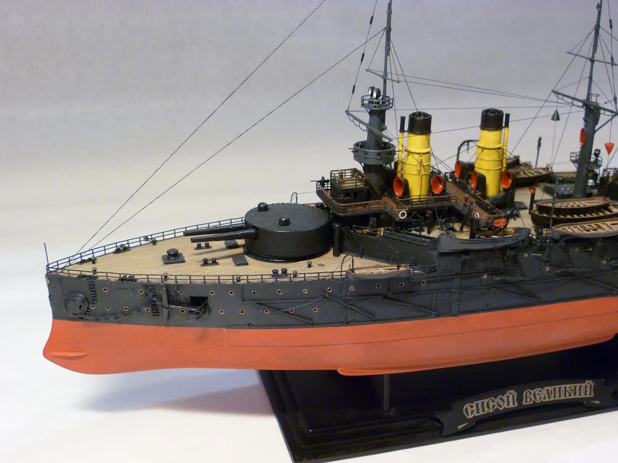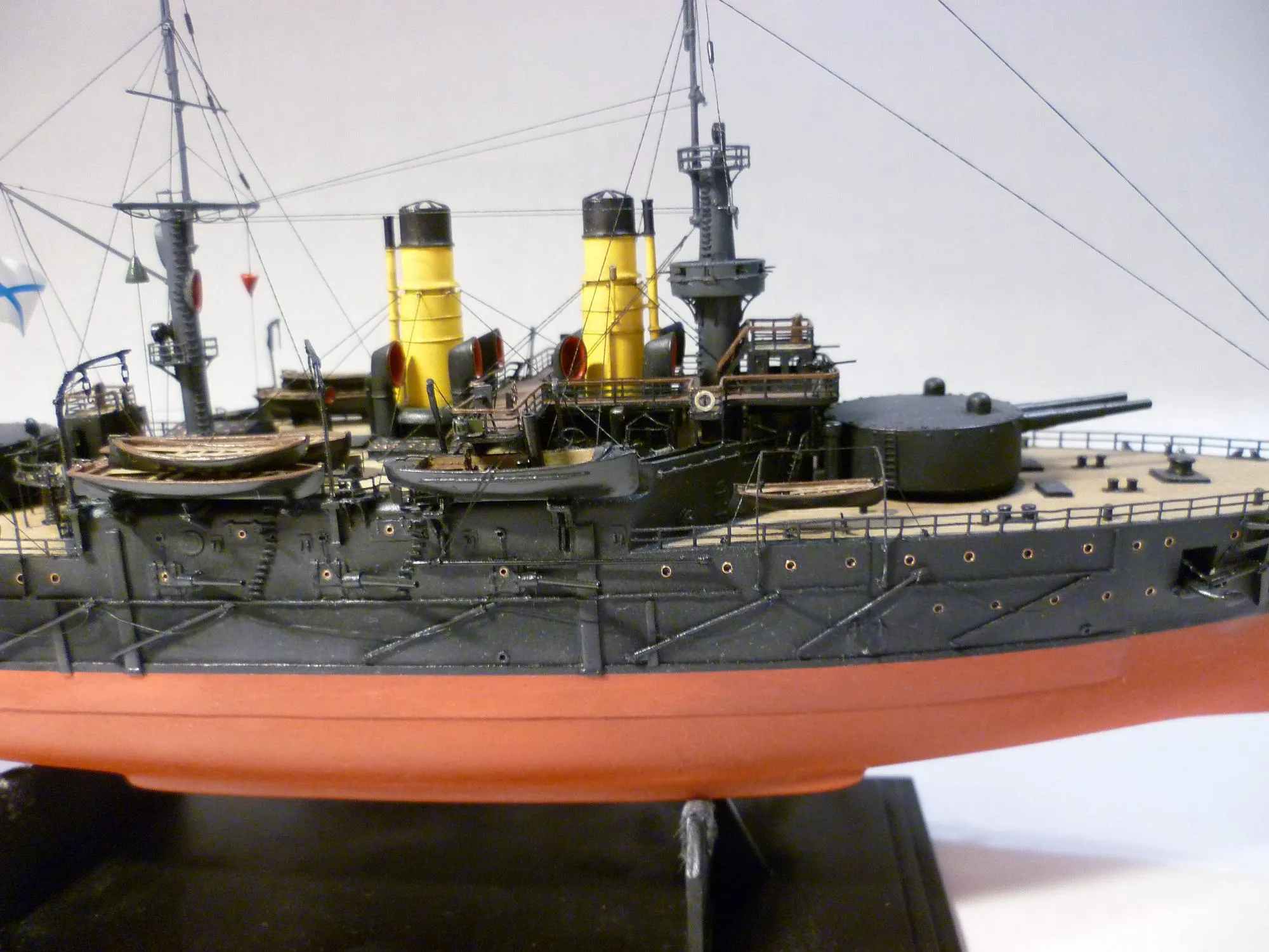 Модель создавалась на период осени 1904 г. в момент отплытия 2 Тихоокеанской эскадры к театру военных действий на дальний восток. Выполнена модель из коробки с авторскими доработками по чертежам г.А.Логинова и фотографиям оригинала.