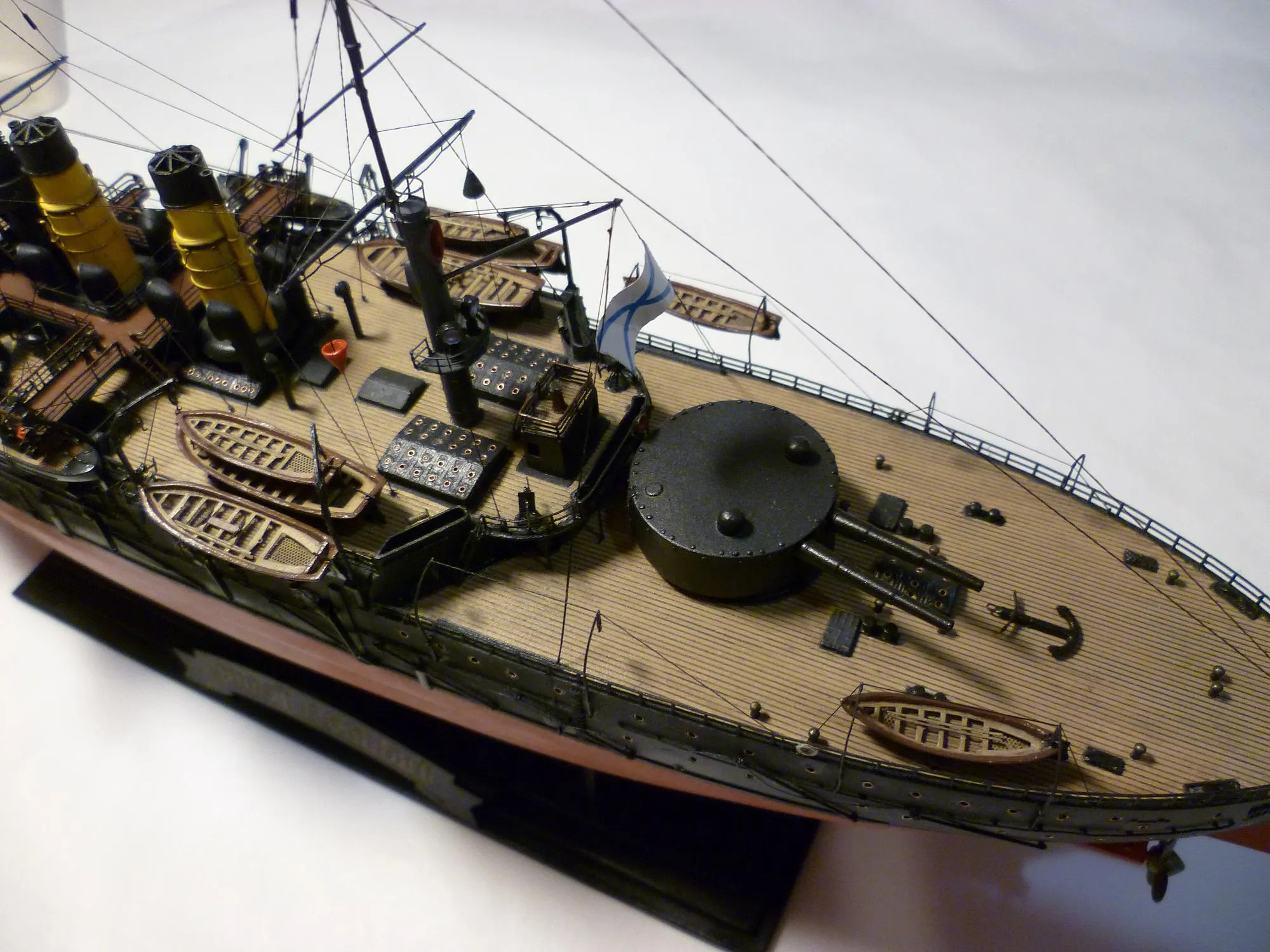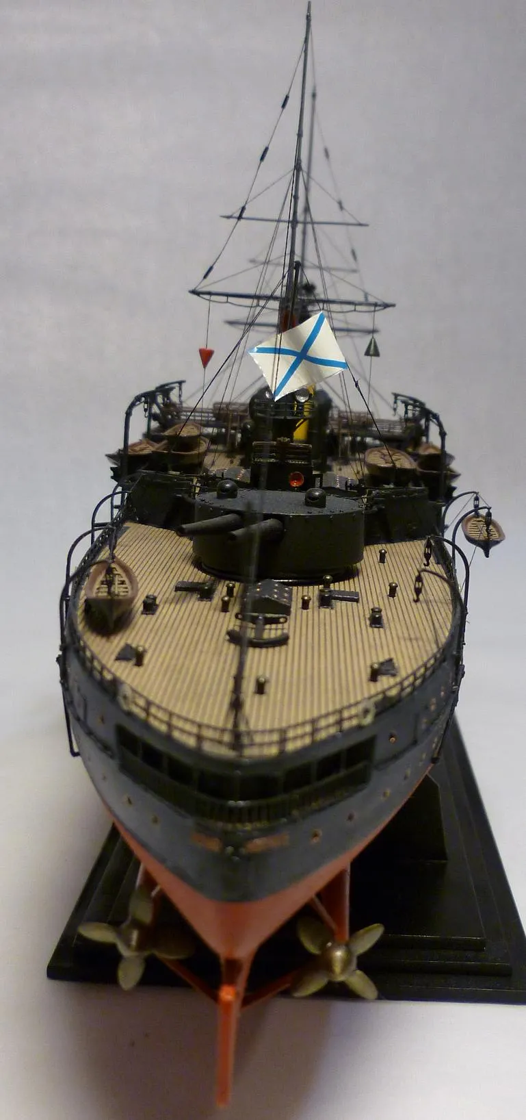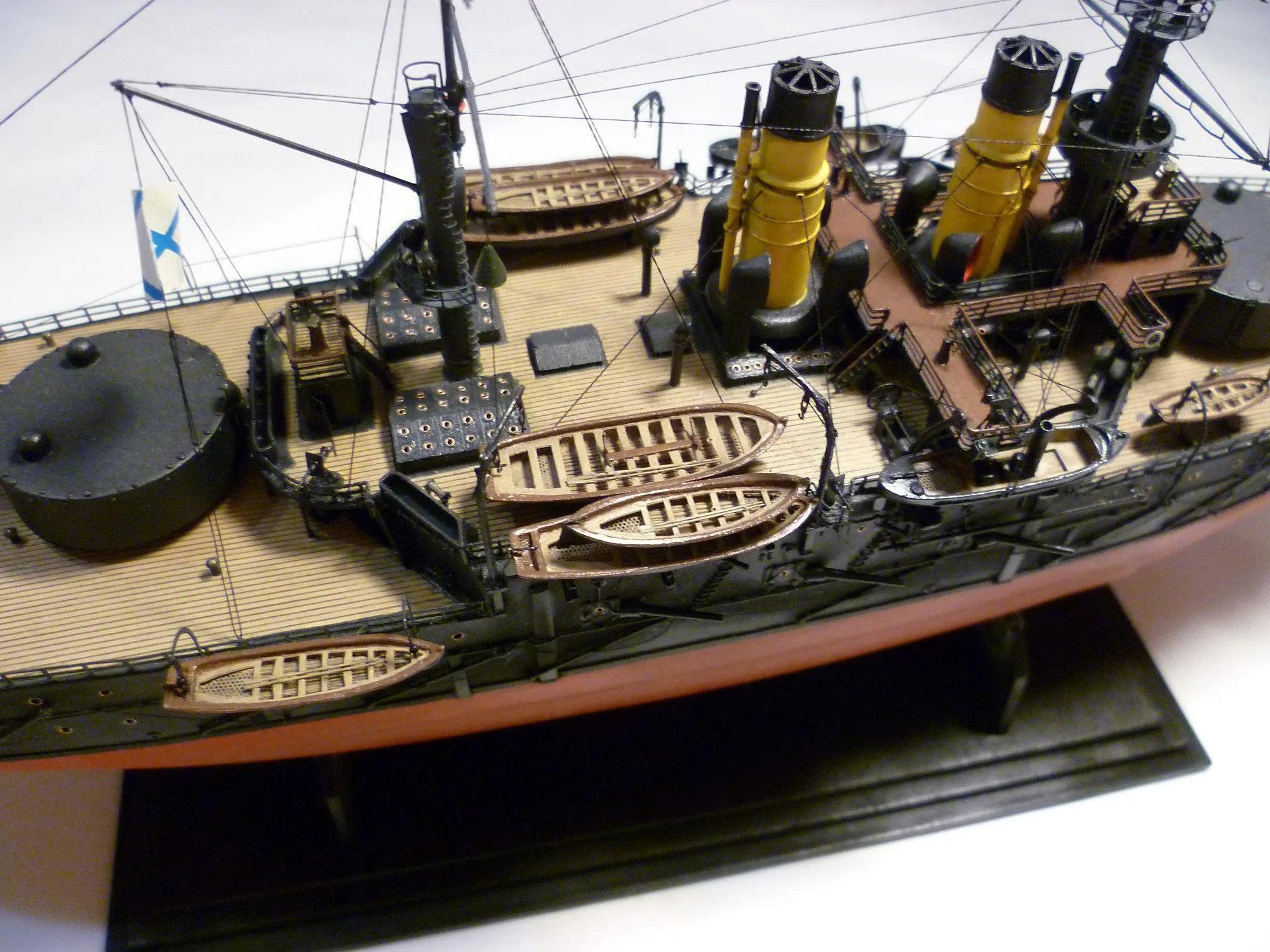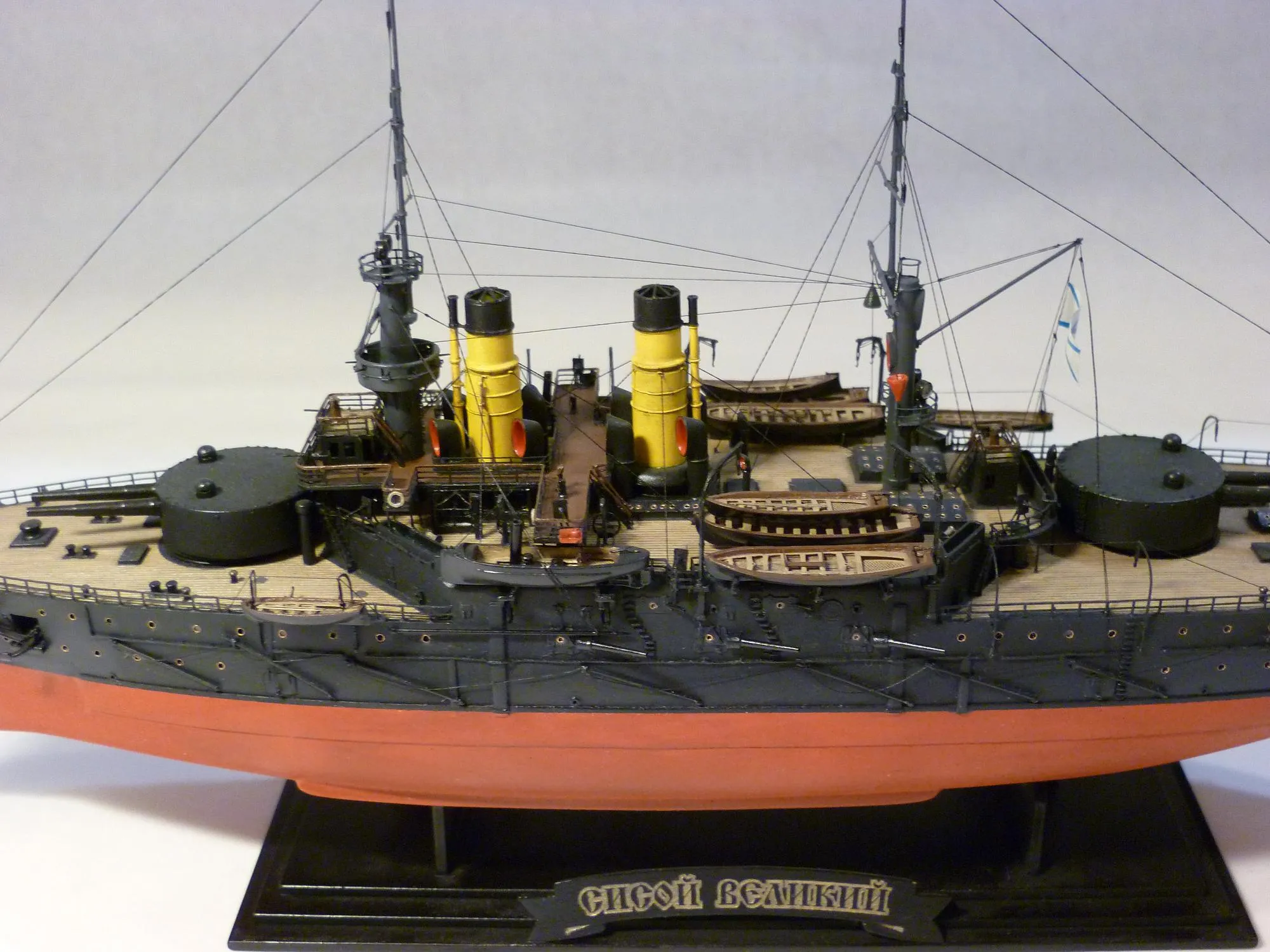 Модель создавалась на период осени 1904 г. в момент отплытия 2 Тихоокеанской эскадры к театру военных действий на дальний восток. Выполнена модель из коробки с авторскими доработками по чертежам г.А.Логинова и фотографиям оригинала.