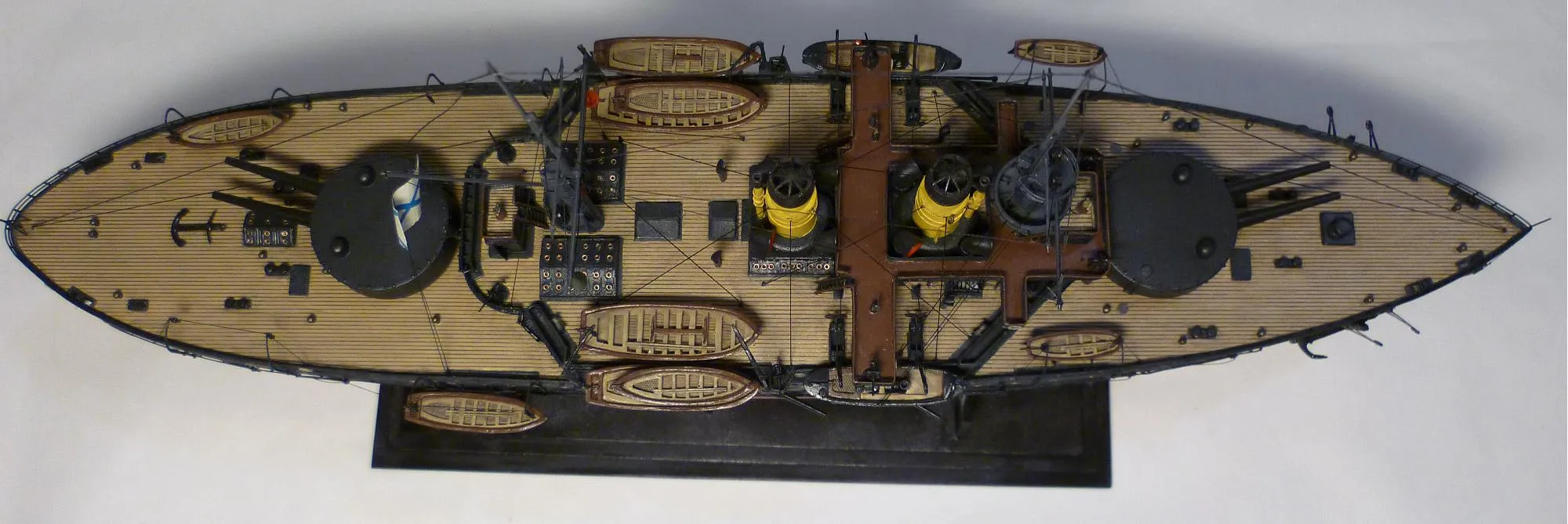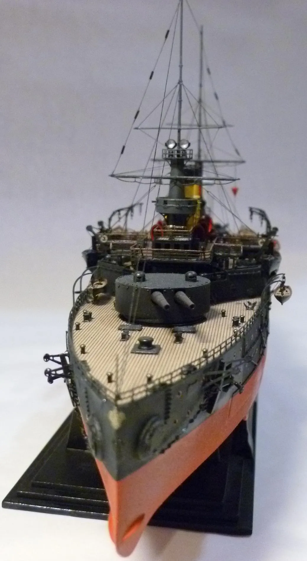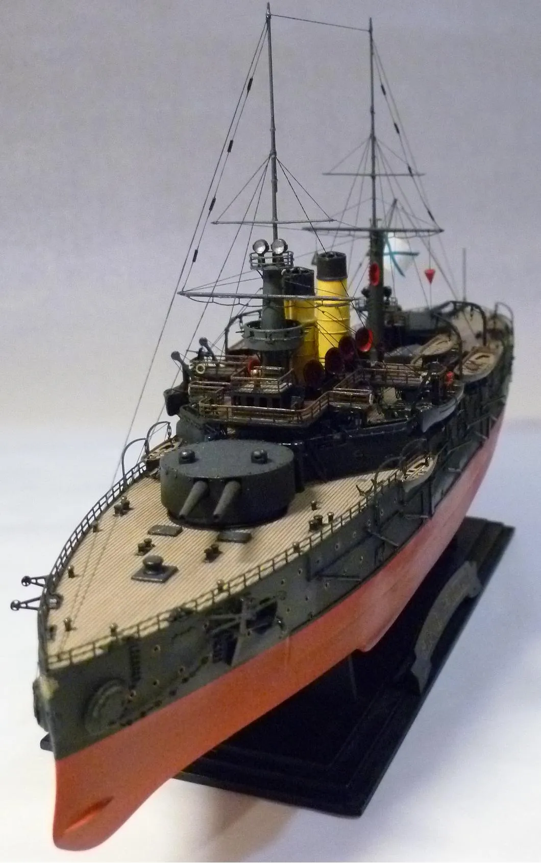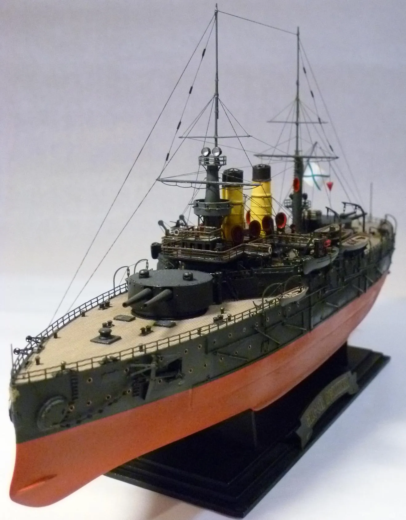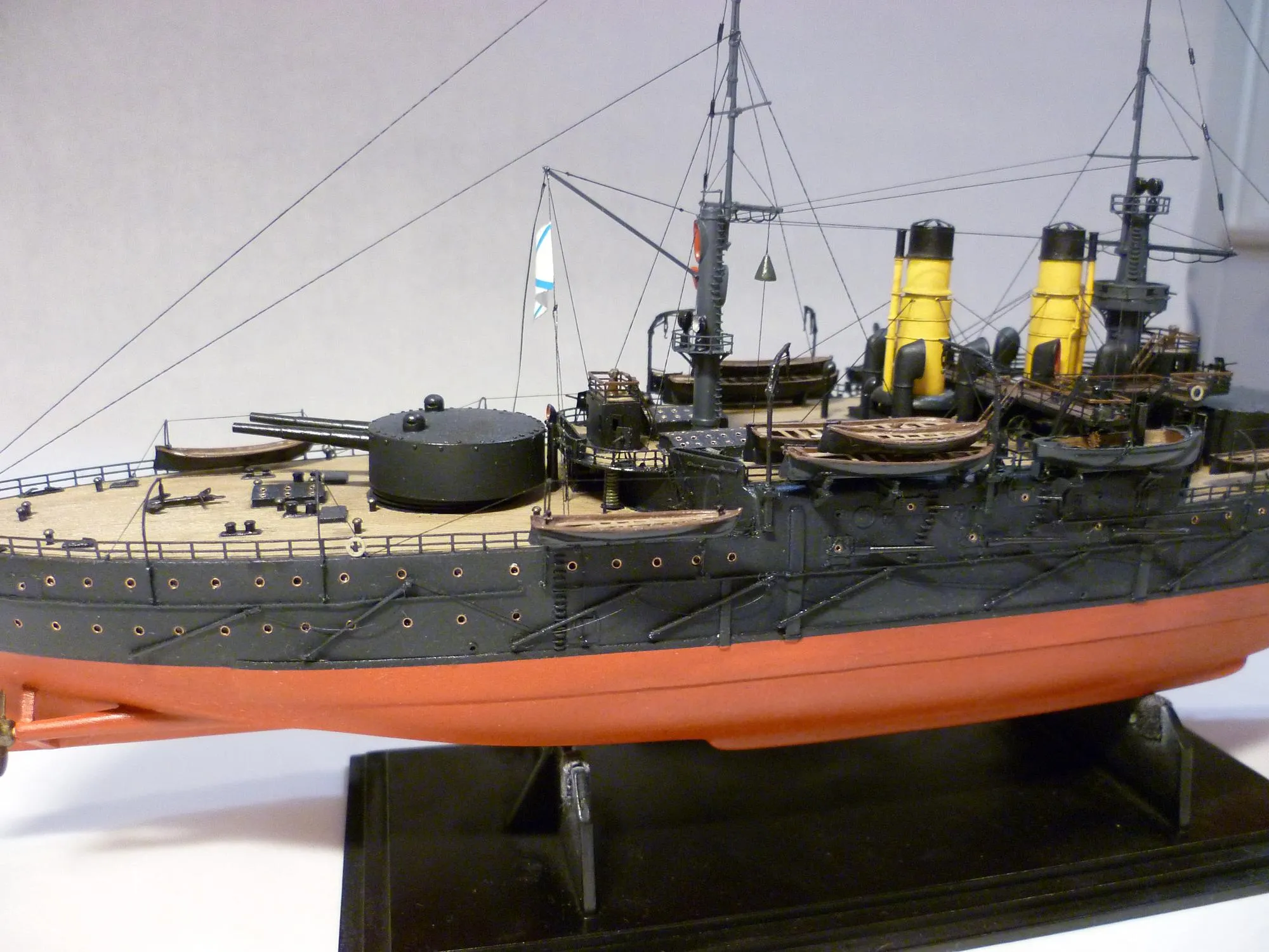 Модель создавалась на период осени 1904 г. в момент отплытия 2 Тихоокеанской эскадры к театру военных действий на дальний восток. Выполнена модель из коробки с авторскими доработками по чертежам г.А.Логинова и фотографиям оригинала.