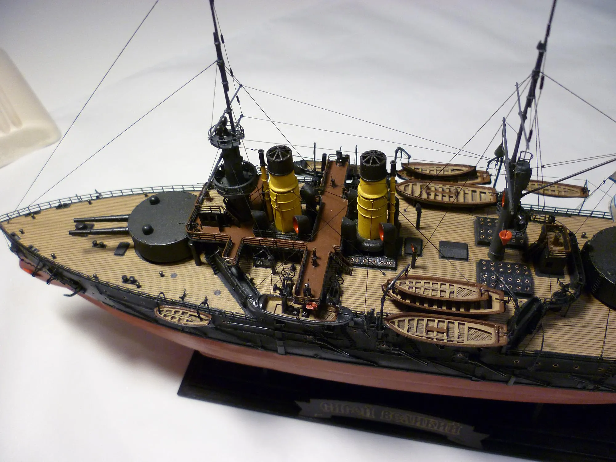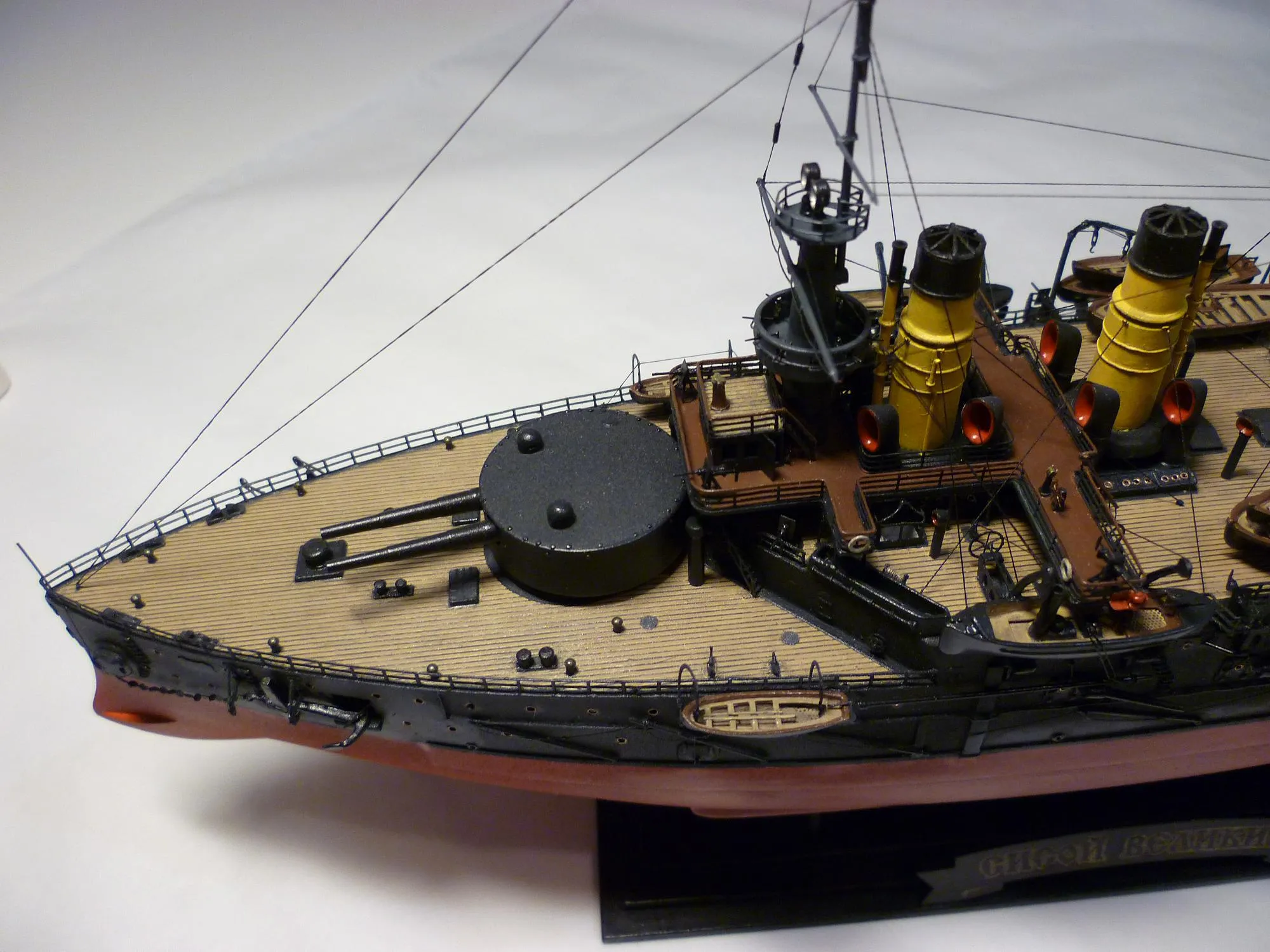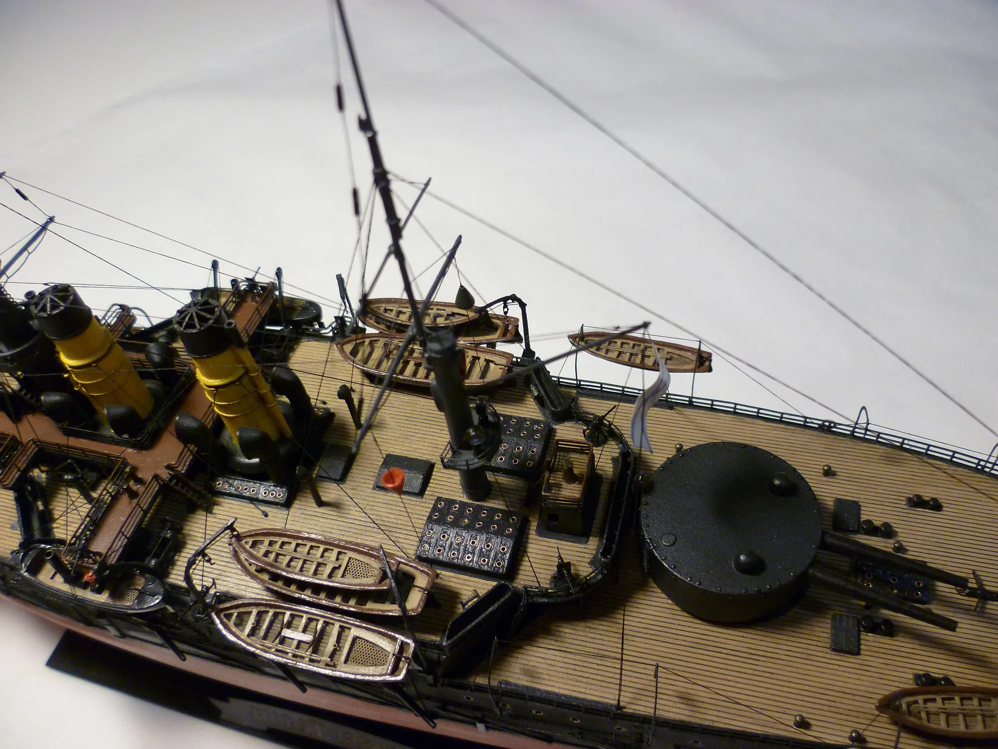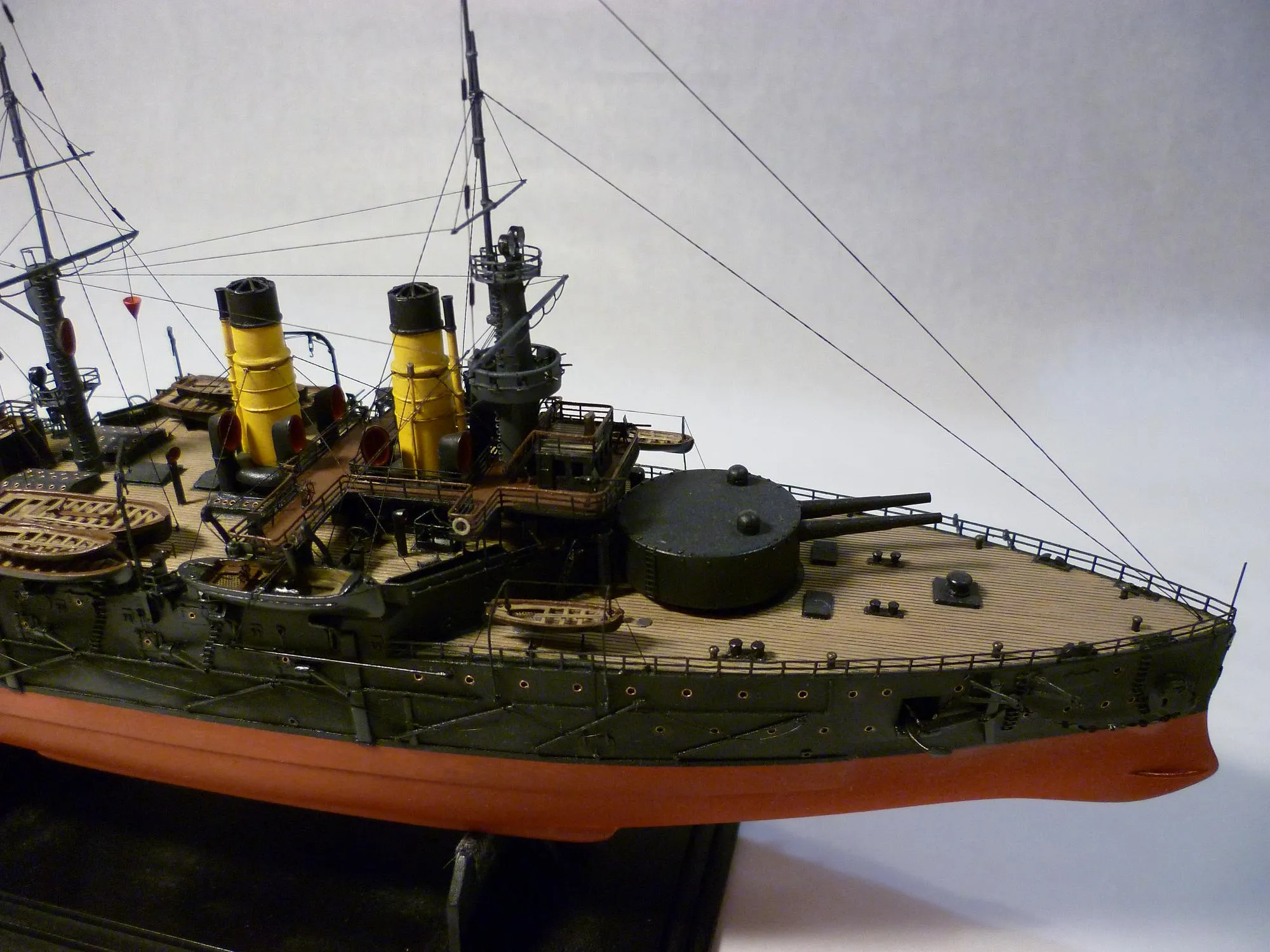 Модель создавалась на период осени 1904 г. в момент отплытия 2 Тихоокеанской эскадры к театру военных действий на дальний восток. Выполнена модель из коробки с авторскими доработками по чертежам г.А.Логинова и фотографиям оригинала.