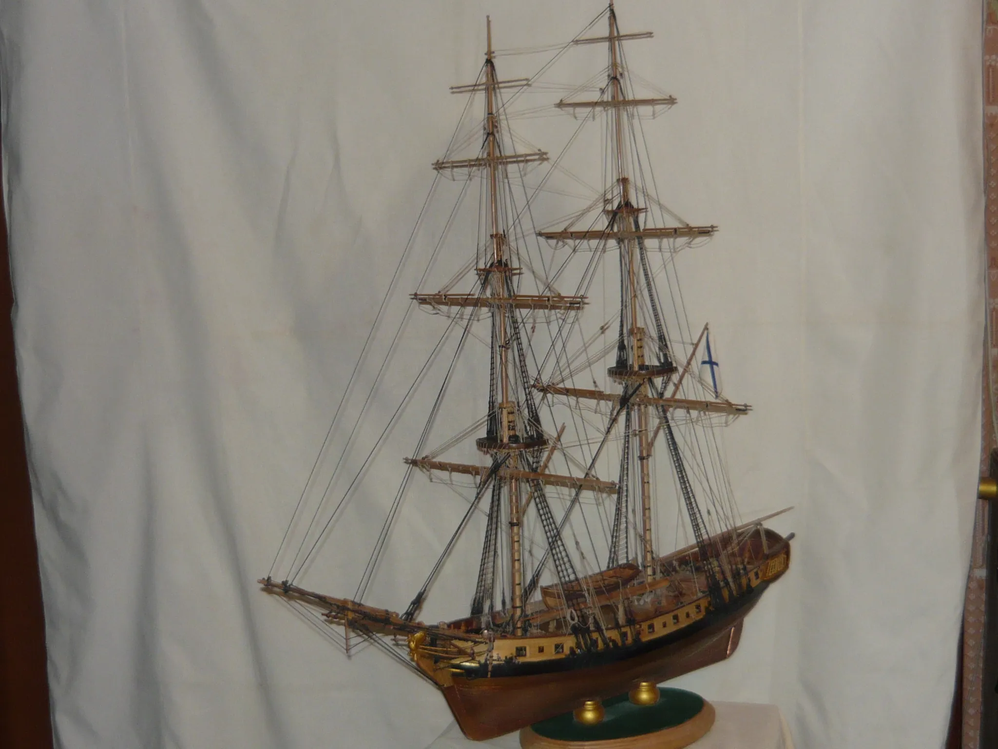 Модель выполнена в 50-м масштабе. При постройке использовались чертежи из книги Митрофановых , архивные документы. Это в общем то реконструкция,т.к. точных материалов по Фениксу нет,или еще не найдены. Точнее нет материалов по декору и вооружению. Вообще было непонятно,какой декор был на Фениксе и был ли он вообще. Просмотрел много чертежей балтийских бригов того периода, на одних декор был,на других его не было . С одной стороны,учебный корабль ( могли и не делать из экономии ) ,с другой стороны ,в это время покровительство над морскими учебными заведениями взял Великий князь ( могли и сделать ) . Декор в общем то сборный ,на основе сохранившихся чертежей бригов того периода плюс минус 10 лет.