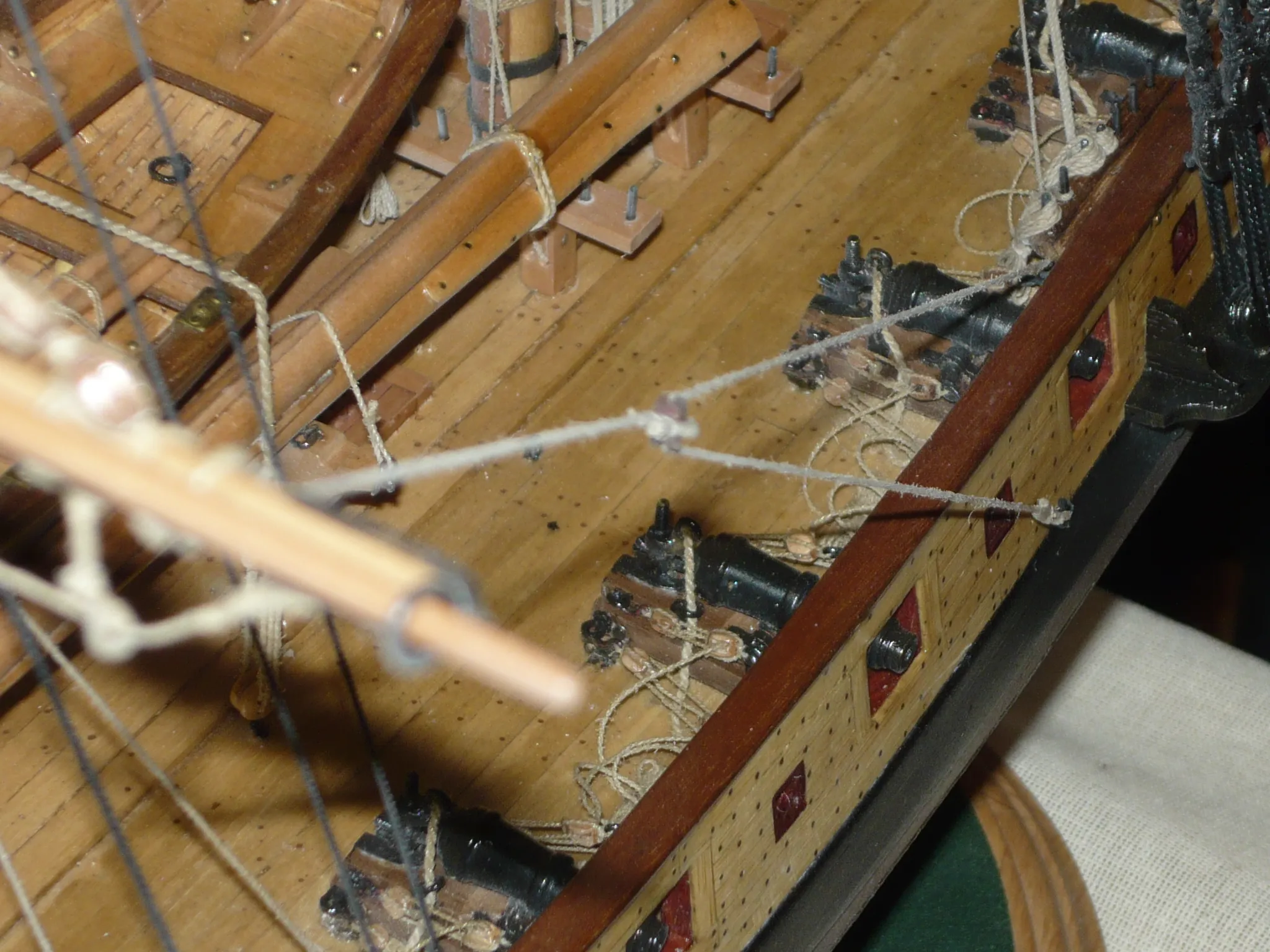Вооружение 24-х фунтовые карронады,но ни где не нашел информации,какие именно. По-этому при изготовлении карронад использовал альбом Горобовскогго.