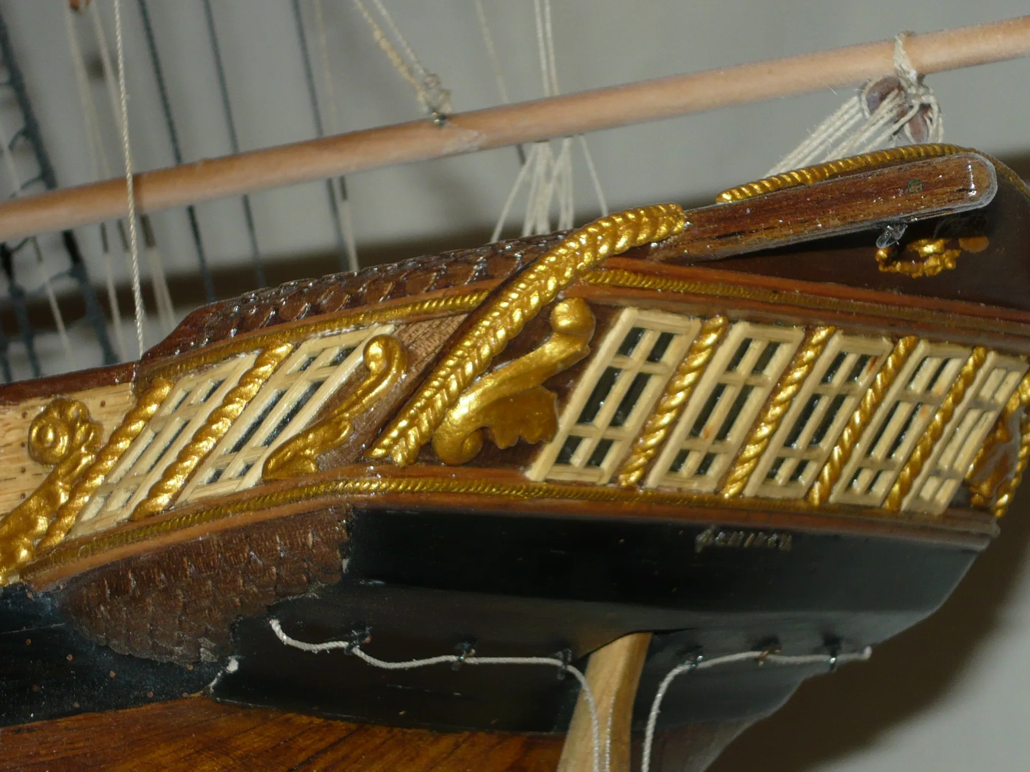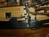 Медная обшивка подводной части тоже весьма спорная. Некоторые историки считают,что на Балтике корабли того периода медью не обшивали,другие считают наоборот. Решил сделать.