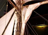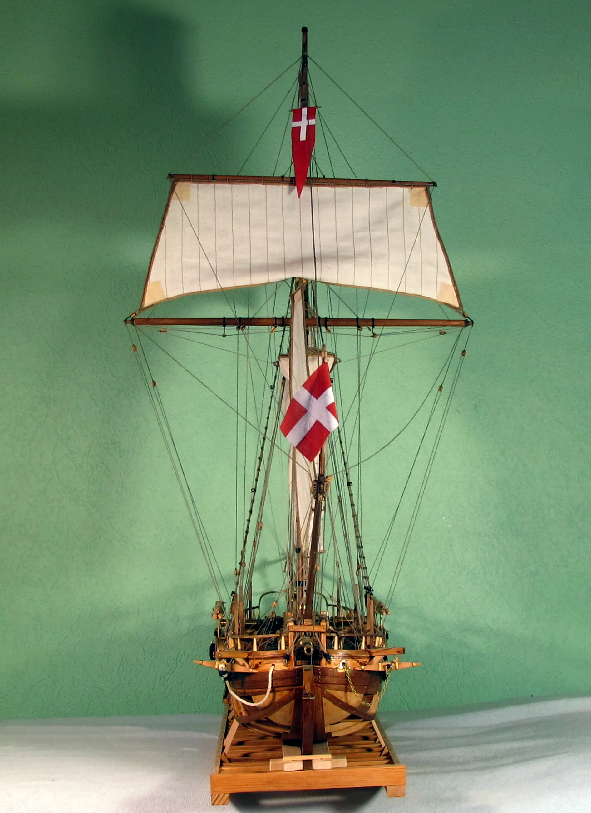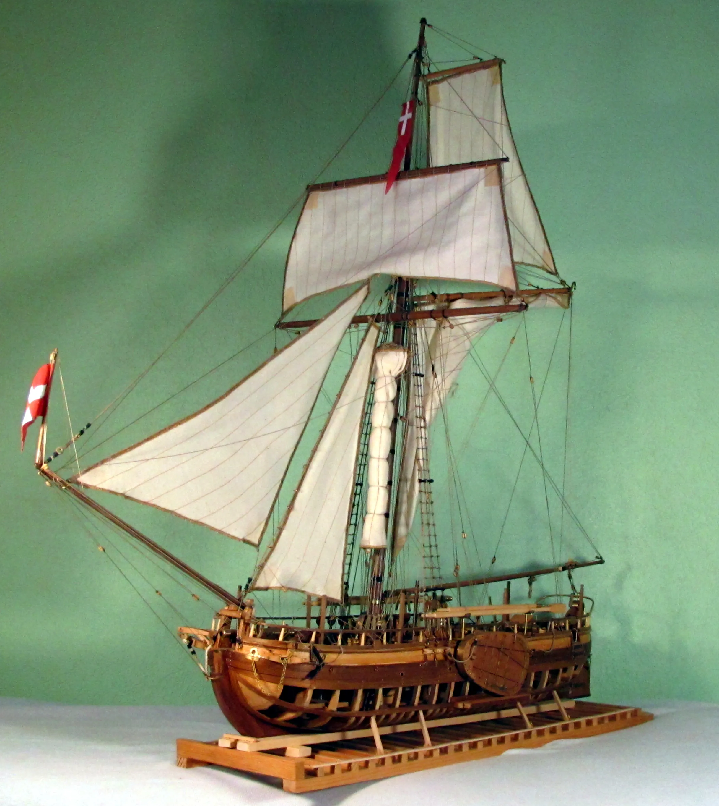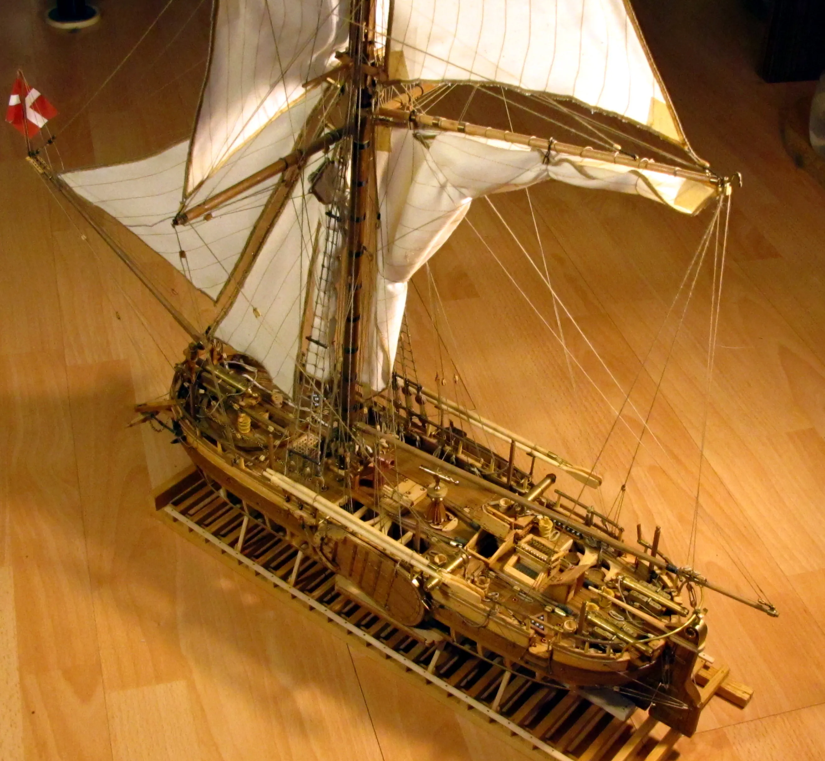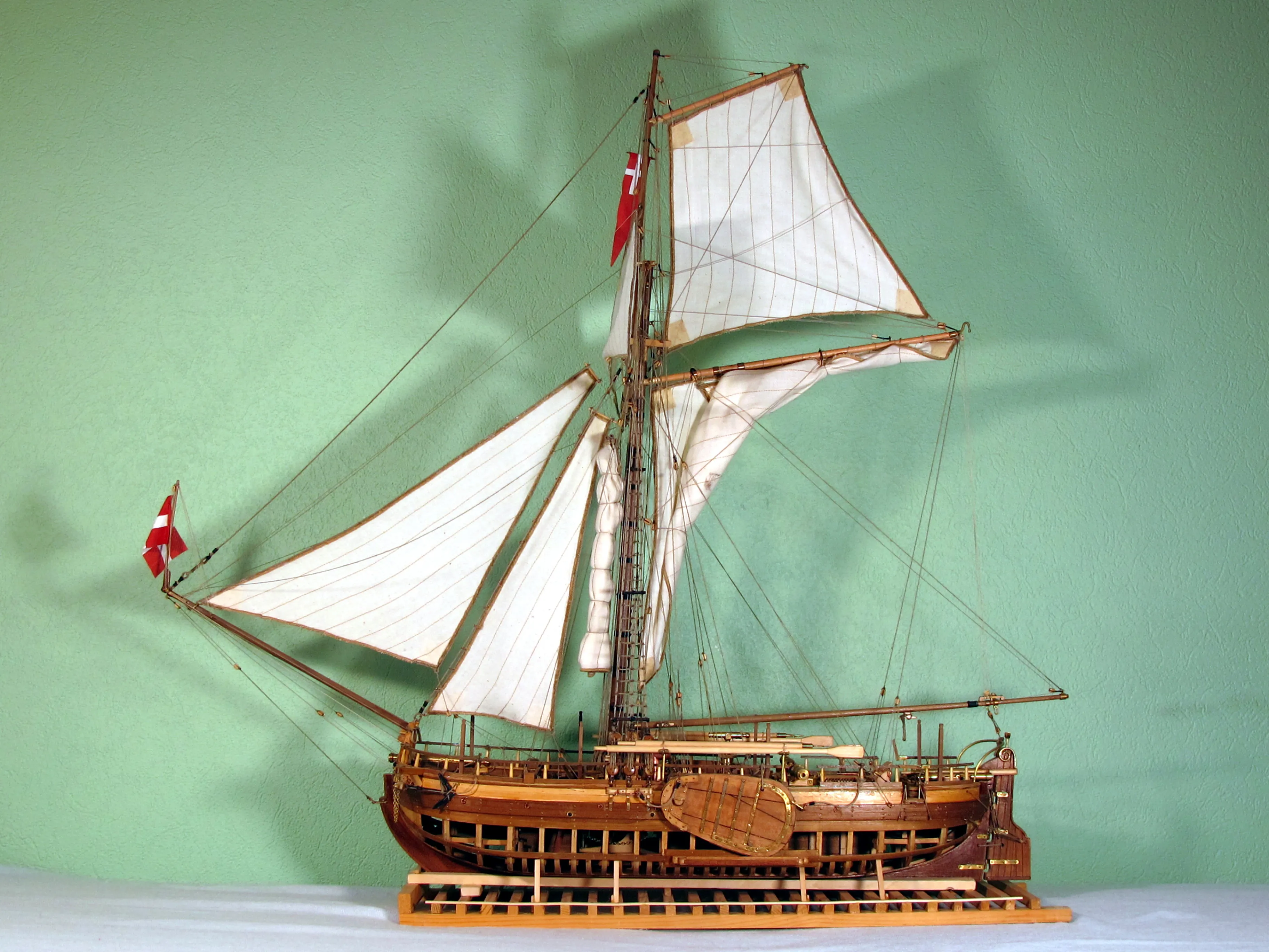Паруса покупные, из вашего магазина. Немного модернизировал (усилил углы, обшил). При проводке такелажа трудностей не возникло. Чертежи достаточно подробные.