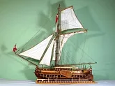 Первая проба выполнить модель в "адмиралтейском" (или почти) стиле. Поэтому из набора, практически, использованы только стволы пушек, обшивка для корпуса и заготовки для рангоута.