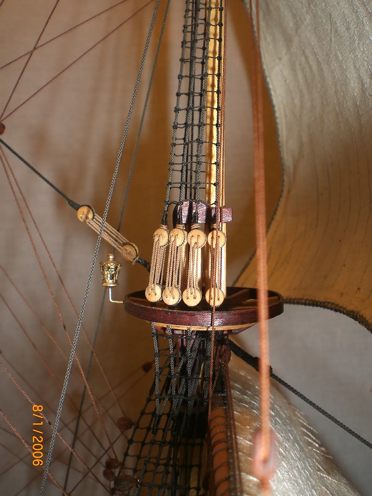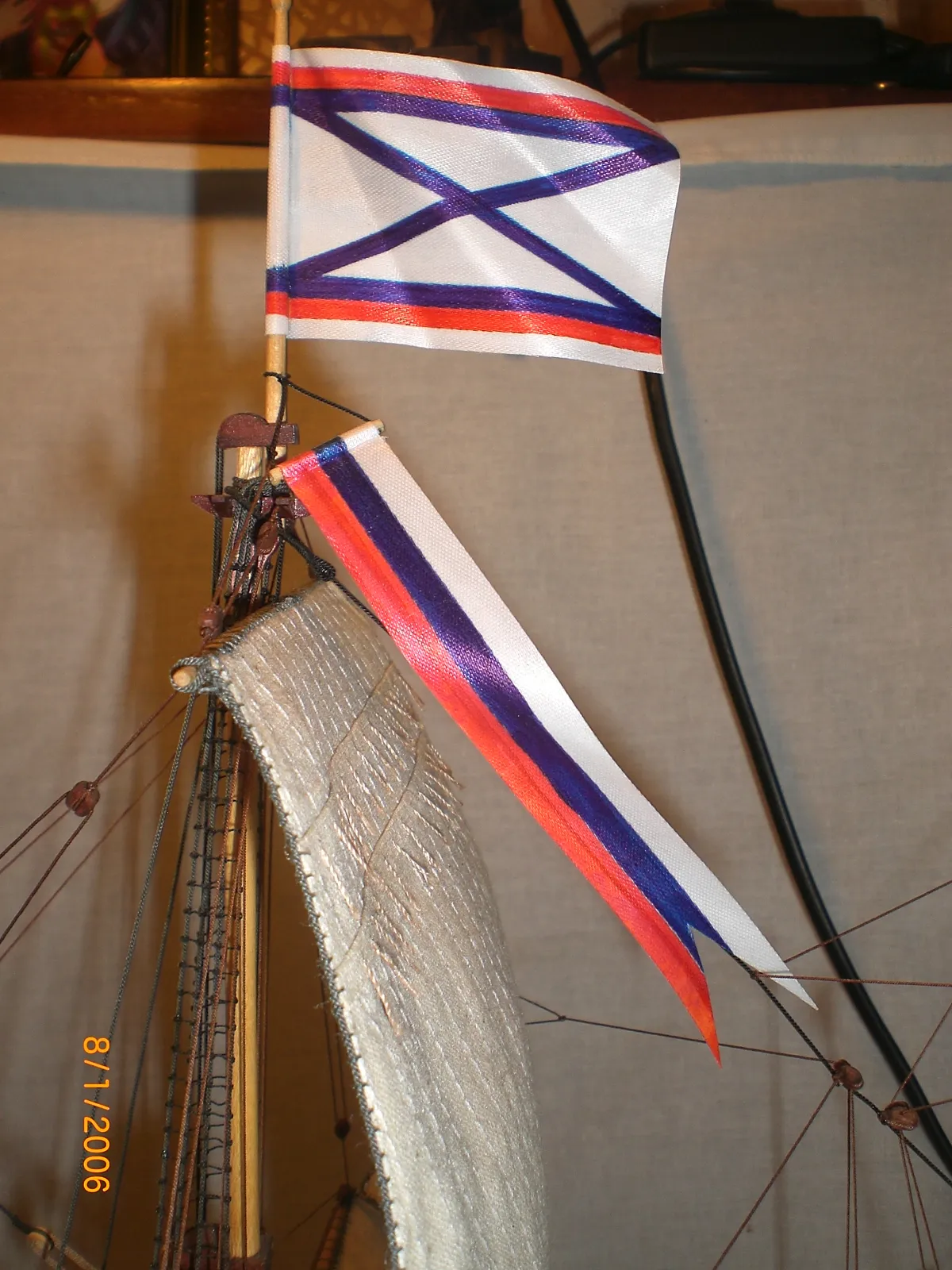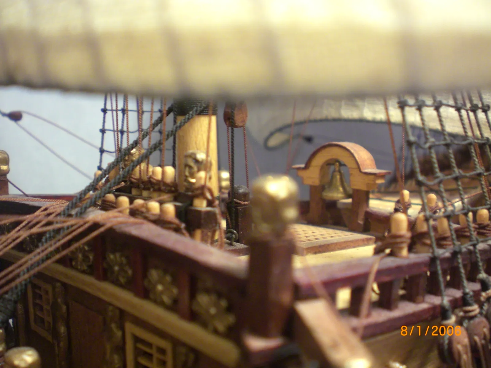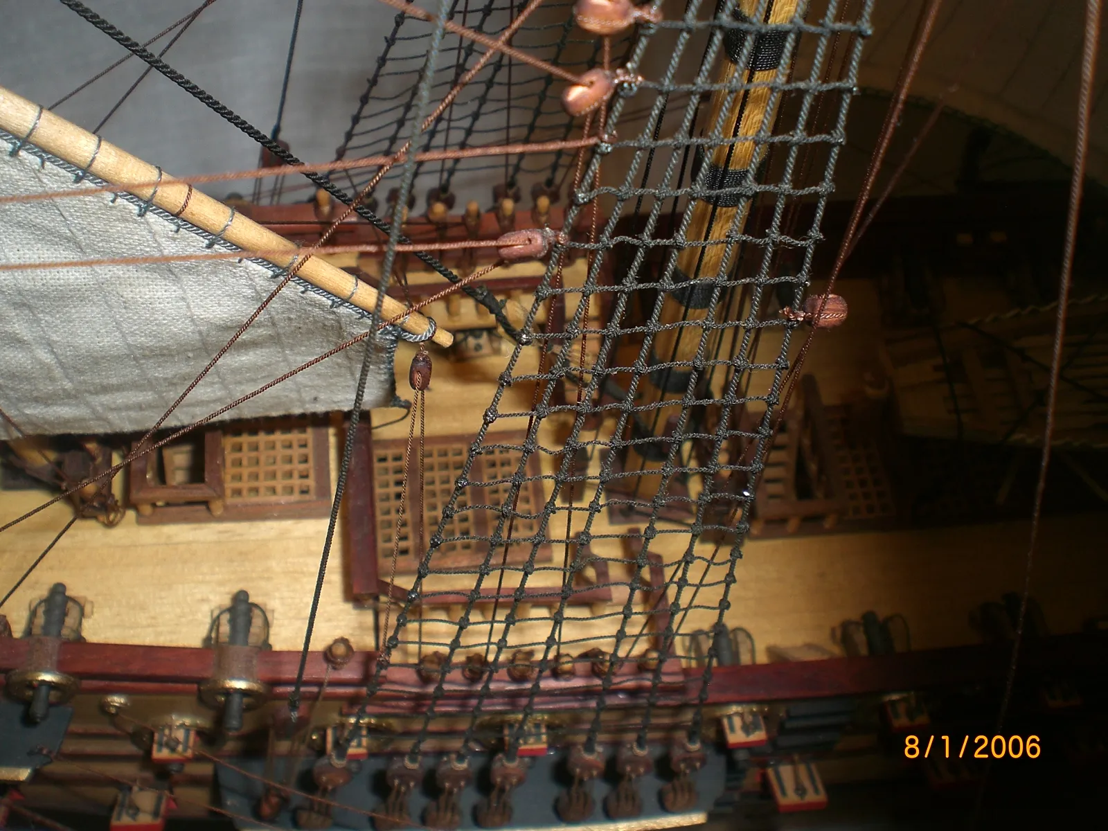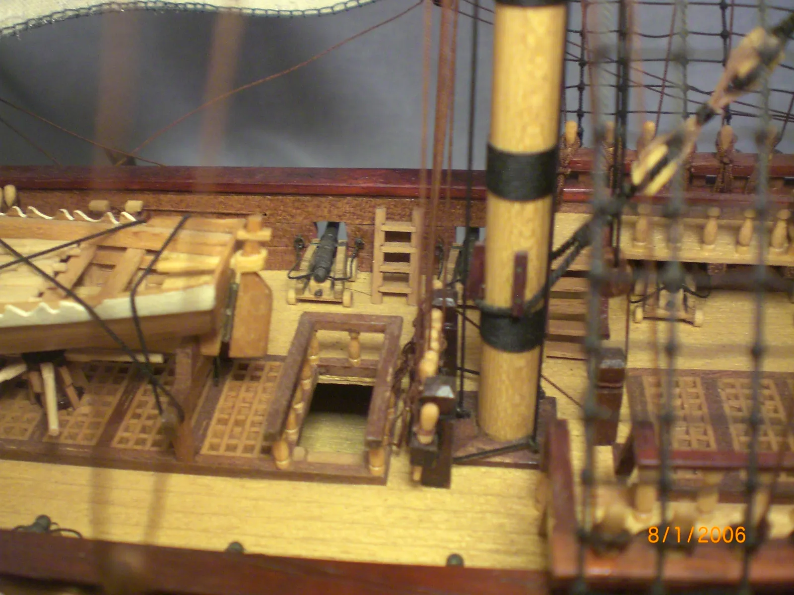 Масштаб 1:96.При постройке использовались польские чертежи,М-К и как наглядный пример-пластиковый набор "Огонек",из него же взята большая часть декора.Корона льва,дельфины и завитки на офицерском гальюне изготовлены самостоятельно.Покрашены золотой нитрокраской "Hobby". Борта снаружи-верх:шпон буковый,низ:дубовый.Палуба-рамин,борта внутри-шпон из журналов "Cан Джованни Батиста".Остальное-липа,ольха,красное дерево.Пушки точены из дерева и покрыты лаком с графитом.Такелаж навит из полиэфирных ниток.Бегущий такелаж бежевого цвета,покрашен спиртовой морилкой "красное дерево"Паруса льняные-нравится материал.Полотно напоминает парусину.Мачты и реи из рамина.На дату внимания не обращайте-Фотик завис на дате выпуска.Закончено в сентябре 2012.