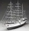 Данный комплект чертежей судна Gorch Fock выполнен в масштабе 1:90, что даёт длину модели 98 см. В набор чертежей входят 6 страниц формата примерно 100х70 см и пояснительный текст. Там есть: выкройки шпангоутов, киля, палуб и других каркасных деталей; продольное сечение, боковой вид, вид сверху, сборка корпуса и надстроек; рангоут с размерами и такелаж. К чертежам прилагается пояснительная инструкция (английский, итальянский, немецкий и французский языки).
