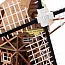 Четыре больших крыла мельницы собираются на специальном стапеле и имеют винтовой загиб, который был необходим для вращения крыльев даже при слабом ветре. Площадка, на которой установлена мельница, предлагается засыпать мелким гравием. Набор имеет много каркасных деталей, светлых реек липы, бумажных листов имитации кирпичной кладки и фототравленных оконных переплетов. Сама мельница обшивается специальной рогожкой. Наличие восьми больших листов с чертежами и двадцатистраничного альбома инструкций должны дать вам возможность беспроблемно собрать эту оригинальную модель. Кроме того, мы выполнили и прилагаем перевод инструкции на русский язык.