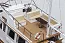 Весь каркас надстроек и рубки собирается из вырезанных лазером деревянных деталей, на него ставятся все люки, трапы, рамы и двери. Затем полученный каркас красится в изумительный белый цвет и вся дальнейшая отделка выполняется под цвет красного дерева. Это и рулевой пост с приборами, и переборки, и ящики, и столы, и диваны, и тумбочки, и кресло капитана. Пол в рубке отделывается под паркет, там же прилагается ковер, занавески на окна, журналы и карты, которыми пользуются капитан и его пассажиры. Верхняя прогулочная палуба имеет тонкое прекрасное никелированное ограждение, диваны с сидениями и спинками под кожу, ее пол сделан из красного дерева. Также выполнены и ступени вниз, на основную палубу яхты. Для безопасности круиза на яхте предусмотрен спасательный плот, который фирма Amati дает отлитым из полиуретановой смолы. Несомненно, Amati проделала хорошую работу и предлагает вам прекрасную, яркую, сверкающую и богатую модель великолепной яхты – символа процветания и благополучия.