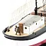 Корпус модели наборный, из вырезанных лазером киля и шпангоутов. Поскольку корпус предназначен под окраску, то он имеет одинарную обшивку. Настил палубы стандартный, из реек липы шириной 3 мм. Палуба судна весьма плотно заставлена. Тут и якорная лебедка, и швартовые тумбы, и кофель-нагельные планки, и помпа, и шлюпка, и кормовая надстройка, и штурвал. Вооружение судна состоит из двух пулеметов и орудия. Все они закрываются фальш-надстройками, которые, как и на реальном судне, легко ставятся и убираются.В данной модели корабля много фоторавленных деталей, которые идут на мелкие элементы якорной лебедки, помпы, пушки, пулеметов, крючков фальшнадстроек, палубных рымов и иллюминаторов. Инструкция модели в схемах и чертежах. Прилагается ткань для парусов и выкройки для них. Эта модель судна будет весьма интересна, т.к. сочетает в себе паруса и современное вооружение. Ну а ее история, сами понимаете, будет поводом для бесед за чашкой чая.