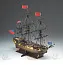 Двадцать точеных пушек под бронзу устанавливаются по бортам на деревянных станках. На палубе вы будете устанавливать миниатюрный металлический шпиль, помпы, штурвал, трубу камбуза, шлюпку, перегородки, трапы и ограждения. Для рангоута прилагаются круглые заготовки различного диаметра, для такелажа юферсы и блоки из ореха, две катушки ниток и множество схем. Если вы захотите оснастить свою модель парусами, в инструкции даны соответствующие выкройки. Завершает модель небольшая подставка и табличка с названием.