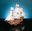 Уже вырезанные деревянные детали составляют основу наборной конструкции корпуса с двойной обшивкой из липы и ореха. Набор имеет большую коробку с мелкими деталями, в которой лежат блоки и юферсы, заготовки для решеток, утки, якоря, рымы, вант-путенсы и т.д. Деревянная шлюпка нуждается лишь в чистовой обработке и изготовлении интерьера. Точеные пушки имеют правильное чернение под темную бронзу, деревянные лафеты выполнены из ореха. В наборе много фототравленых деталей, как функциональных (вроде петель для руля), так и декораций, а вот носовая фигура литая. В комплекте также есть ткань для парусов и набор флагов. Чертежи на одиннадцати листах, инструкция дана отдельной книгой.