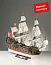 Эта модель корабля из дерева итальянской фирмы COREL прекрасна, великолепна и, несомненно, является бриллиантом во всей коллекции. Это обусловленно несколькими причинами: большой масштаб, позволяющий проработать множество деталей; размер законченной модели; роскошный подбор материалов. Но самым обворожительным в модели является литьё. Более 80 литых фигурок, составляющих украшение фрегата, имеют размеры от 2-х до почти 6-ти см. При этом литые детали затонированы под старину и не нуждаются ни в какой обработке. Из других достоинств модели можно выделить 58 литых пушек под бронзу, сделанных со всеми полагающимися элементами на орудийном стволе. Обшивка выполняется из первоклассного ореха, все деревянные детали каркаса уже вырезаны, причем бимсы верхних палуб даны отдельными деталями, поэтому проработка нижних палуб выполнена на должном уровне. В комплекте большой лист фототравленных деталей, множество фитингов, два огромных якоря и еще более впечатляющая шлюпка. Чертежи и инструкции, ткань для парусов, четыре флага (кормовой особенно хорош) и деревянная подставка входят в набор.