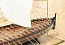 Парусное вооружение модели состоит из простой мачты-однодревки, рея, уже прошитого паруса и простейшего такелажа. Хотя на топе мачты есть примечательный элемент – воронье гнездо в форме узкого и глубокого цилиндра. Это прототип более поздних (появившихся через 2000 лет) марсовых площадок. Представляете, между подобным судами и кораблями Колумба прошло 2000 лет! Это такая же пропасть, как между распятием Христа и сверхзвуковым истребителем! Фантастика!