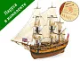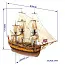 Испанская фирма OcCre предлагает вашему вниманию модель этого знаменитого корабля, выполняемую традиционным наборным способом. Детали каркаса уже вырезаны лазером, что избавляет вас от нудного и утомительного выпиливания нескольких десятков одинаковых деталей. Из-за тупых носовых обводов, довольно сложно сделать обшивку без носовых бобышек - к счастью, производитель позаботился об этом и положил в набор четыре бальзовых бруска. Бальза - чрезвычайно лёгкое и податливое дерево, поэтому обработать целые бруски этого материала не составит труда. Готовый каркас корпуса обшивается рейками дважды: сначала черновой слой, толстыми светлыми липовыми рейками 2х5 мм, чтобы придать корпусу прочность; а затем, поверх первого слоя, укладываются тоненькие рейки липы и благородного красного дерева, толщиной 0,5 мм, которые и определяют внешний вид корпуса. Настил всех палуб также выполняется отдельными рейками липы, а не рисуется на цельном куске дерева.