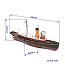 В наборе, кроме деревянных деталей, вы найдёте множество металлических элементов. Это и кнехты, и якоря, и шпили, и лебедки, и воздухозаборники, и прожектора, и иллюминаторы, и всевозможные стойки. А обе шлюпки буксира выполняются из дерева по наборному каркасу. Сразу же в комплекте с моделью вы получите гребной винт, руль, дейдвуд и качалку для рулевой машинки (потребуется при установке радиоуправления). В сборке этой модели буксира вам будет помогать пошаговая цветная фотоинструкция, где содержится много цветных фотографий от закладки киля модели до установки аппаратуры управления.