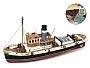 Такую сборную модель буксира предлагает вам сделать испанская фирма OcCre. Выбранный крупный масштаб даёт длину модели более 80 см, что позволяет поставить на нее мотор и сделать буксир радиоуправляемым. Классическая наборная конструкция корпуса модели корабля имеет лишь одну особенность: большинство шпангоутов и килевая рамка полые внутри, тем самым обеспечивая необходимый объем для мотора и исполнительных механизмов в радиоуправляемой версии этой модели. Корпус имеет одинарную обшивку, которая шпаклюется, зашкуривается и окрашивается. А в версии с радиоуправлением еще и промазывается изнутри смолой. В отличие от других моделей, особенно парусников, борт у Ulises выполнен в светлых тонах, а настил палубы темный, из реек красного дерева.