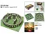 Деревянное основание модели собирается из двух частей, а на него клеится картонное основание с разметкой. На картонном основании указано место и размер основания каждого камня, стоящего на земле, а потому вам не придётся заниматься бесконечными вычислениями и измерениями, чтобы найти нужную точку. Так что за соответствие вашей модели реальному Стоунхенджу можно не переживать. В наборе вы найдёте камни всех необходимых размеров, аккуратно разложенные по пакетикам. Трава для основания и мелкие камешки также есть в комплекте. В качестве инструкции предлагается большой лист с цветными фотографиями и красочными иллюстрациями, которые показывают, как правильно обрабатывать и устанавливать камни. Производитель: испанская фирма Aedes Ars.