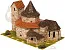 Все картонные детали, которые составляют основу модели, уже вырезаны и готовы к сборке, вам остаётся лишь согнуть их по разметке и прорезать окна с дверьми. Деревянное основание, склеивающееся из нескольких частей, входит в комплект. В наборе дано большое количество керамических кирпичиков (для стен) и готовых керамических деталей. Крыши покрываются черепицей двух цветов, она также есть в комплекте. Для украшения подставки производитель предлагает имитацию травы, гравия и кустов. Помимо иллюстрированных общих советов, вкладываемых в каждую модель, имеется большой лист с цветными фотографиями и схемами разных этапов сборки. Инструкция в схемах и не требует перевода. Клей и краска включены в набор. Производитель: испанская фирма Aedes Ars.