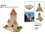 Модель собирается на деревянном основании с помощью картонной основы, детали которой уже вырезаны. Благодаря двум башенкам по бокам основной башни, постройка модели действительно сложна и интересна, отчего результат радует ещё больше. Стены ворот выстраиваются из большого количества керамических кирпичиков, а крыша покрывается черепицей. Для изготовления дверей в наборе имеются деревянные рейки. Дорога через ворота вымащивается керамической плиткой. Клей для сборки есть в комплекте, как и имитация травы для земли вокруг. Есть даже кустики, которыми можно оживить пространство рядом с башней. В качестве инструкции предлагается два больших листа с цветными фотографиями и рисунками: на одном листе общие для всех моделей инструкции, на втором - относящиеся именно к данной модели. Инструкция в схемах и не требует перевода. Производитель: испанская фирма Aedes Ars.