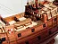 Модель корабля испанской фирмы OcCre собирается из вырезанных лазером деталей. Обшивка корпуса двойная: из реек гибкой липы и отличного темного ореха. Обширный набор мелких деталей содержит всё, что потребуется для сборки модели. Там вы найдете блоки и юферсы из самшита, латунные рымы и нагеля, металлическую шлюпку 75 мм. и деревянные заготовки для решеток.