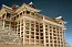 Модель Храма чистой воды выделяется тем, что почти все детали даны готовыми, реек для самостоятельного изготовления элементов дано совсем чуть-чуть. В модели храма сделана ступенчатая имитация скального склона, каменная кладка склона дана наклейками. Всё остальное выполнено, как и нужно, из дерева плюс металлический декор крыши. Самая сложная часть этой сборной модели – свайная конструкция – собирается из уже вырезанных в размер свай и горизонтальных связей, в которых сделаны необходимые прорези.