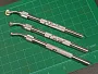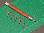Алюминиевое стусло длиной около 17 см идеально подходит для миниатюрных работ. Позволяет делать точные пропилы под углами 90 и 45 градусов. В комплекте идет тонкая пилка EX30490 (46 зубцов/дюйм, длина 127 мм, высота 31 мм, толщина полотна 0,3 мм) и рукоятка N5 для нее.