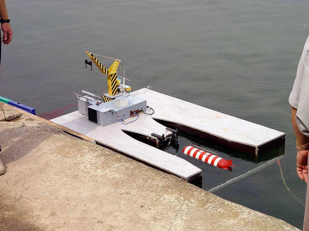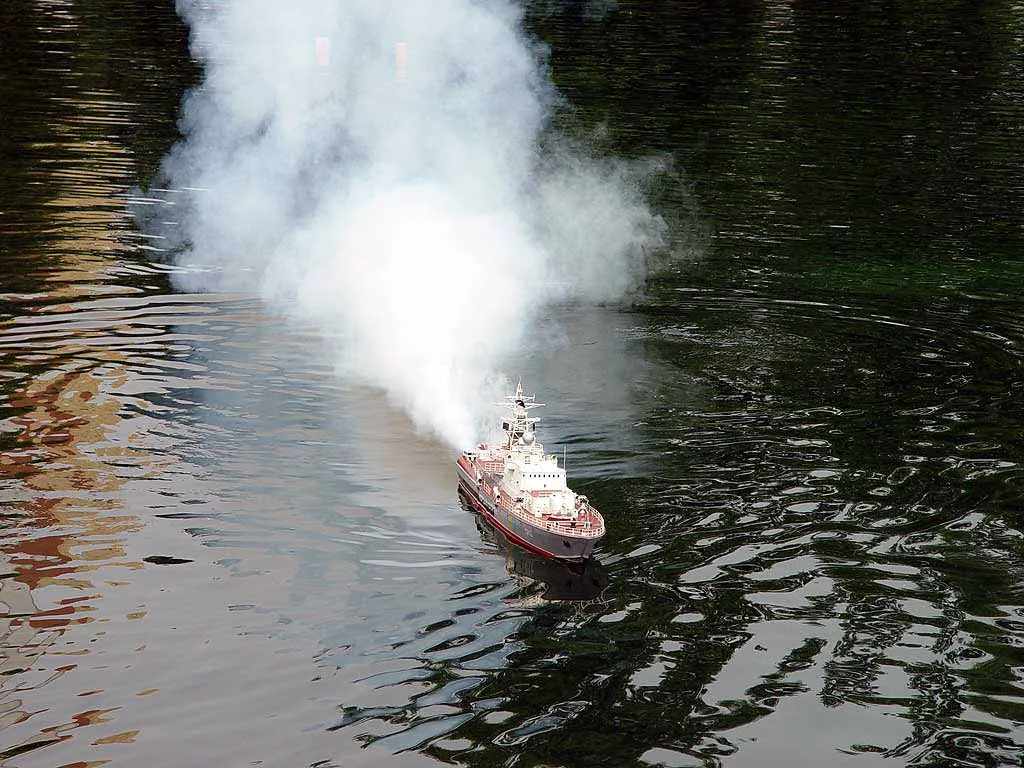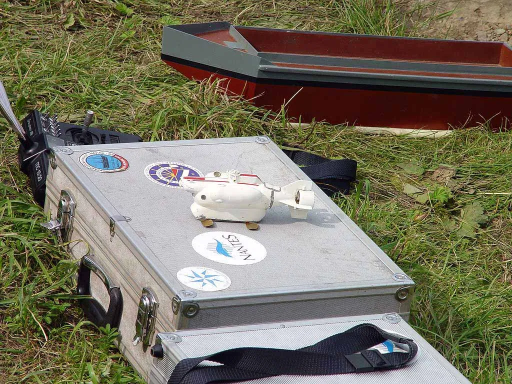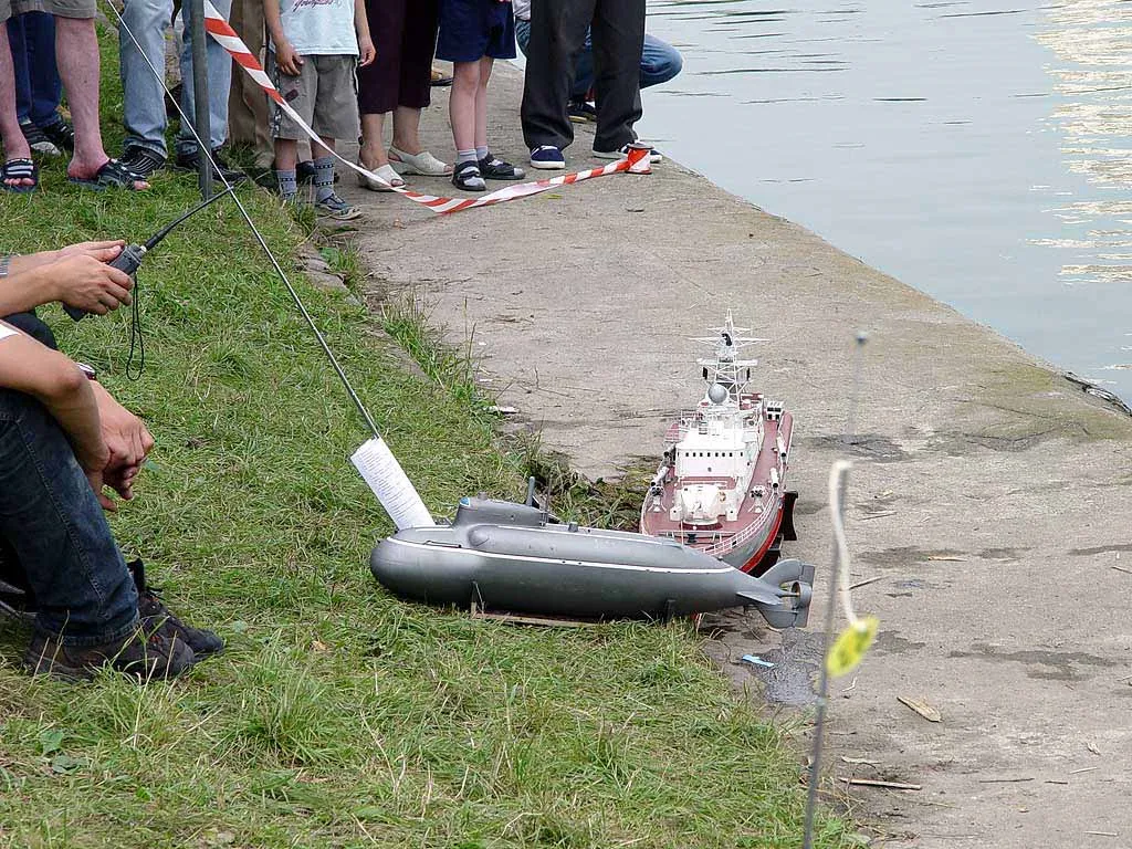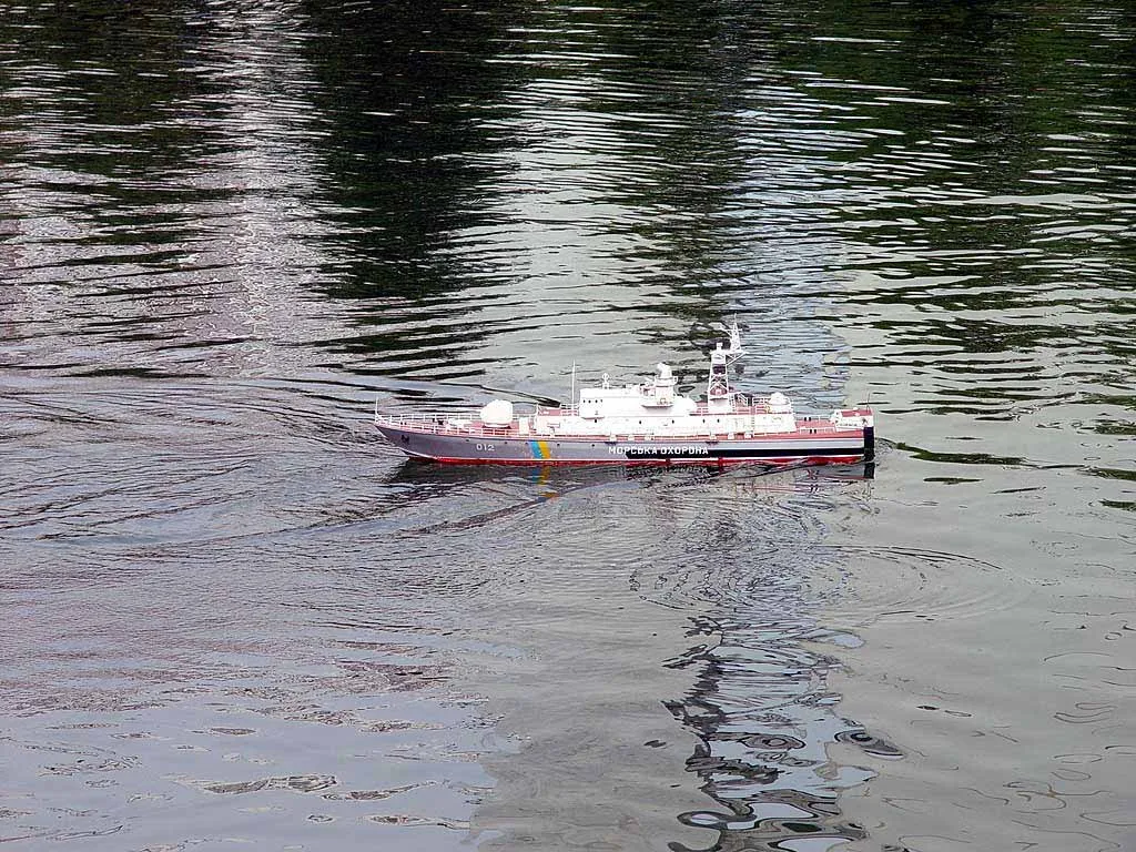 Чемпионат проходил на пруду в парке Дружбы у метро 'Речной вокзал' с 30 июля по 5 августа 2004 года. Участвовали команды Белоруссии, Казахстана, Польши, России, Украины, Чехии. Протоколы чемпионата вы можете найти на сайте NAVIGA. Выступление украинской команды на модную тему борьбы с терроризмом. Сценарий выступления таков: к исследовательской базе с глубоководным аппаратом подходит вражеская подводная лодка 'Пиранья', которая выпускает двух пловцов для закладки зарядов на глубоководный аппарат. После диверсии для уничтожения подводной лодки террористов вызывается военный корабль, который подлодка успешно атакует и повреждает. Корабль кренится на борт и к нему на помощь спешит спасательное судно. В это время маленький батискаф проводит исследование поврежденного и затопленного глубоководного аппарата. После оценки повреждений он их исправляет. Затем приходит большой катамаран 'Коммуна', которая поднимает глубоководный аппарат, грузит его на баржу с целью последующей транспортировки в док для ремонта. Всего в выступлении участвуют семь моделей: глубоководный аппарат, батискаф, подлодка 'Пиранья', боевой корабль, спасательное судно, большой катамаран 'Коммуна' и баржа. |