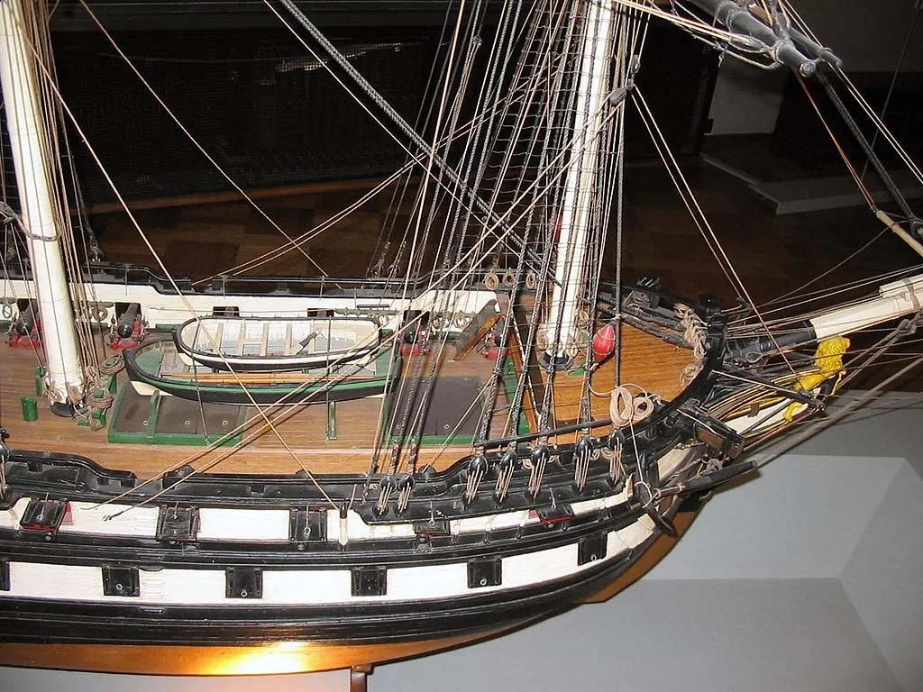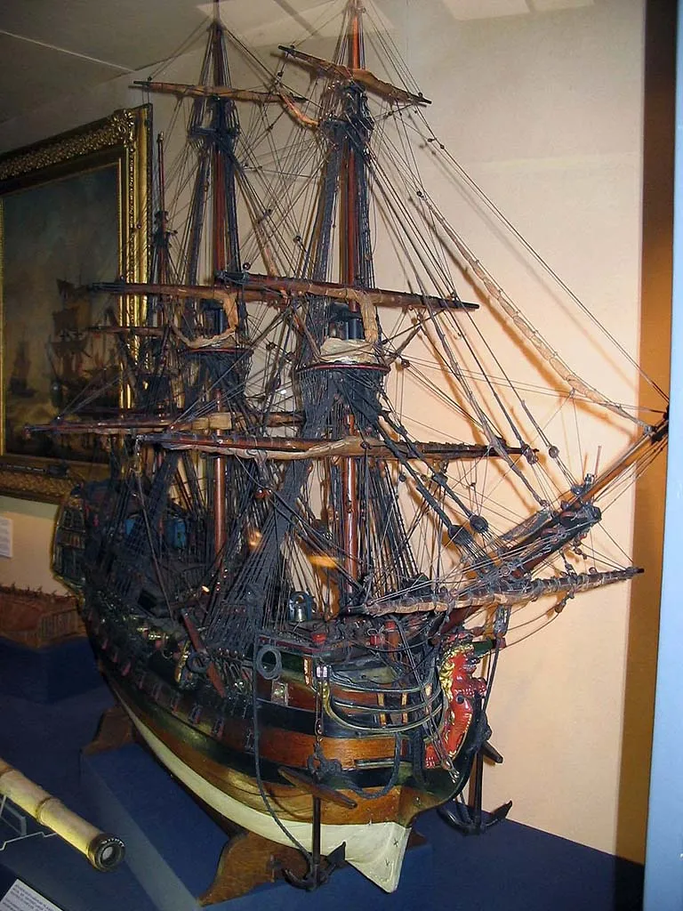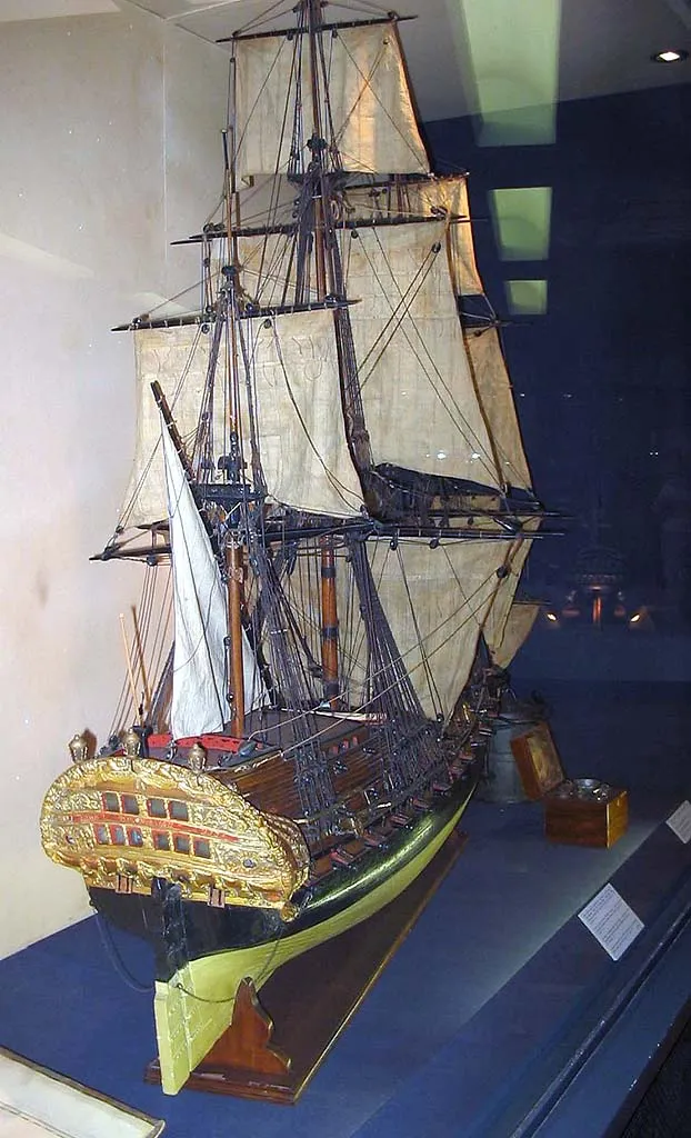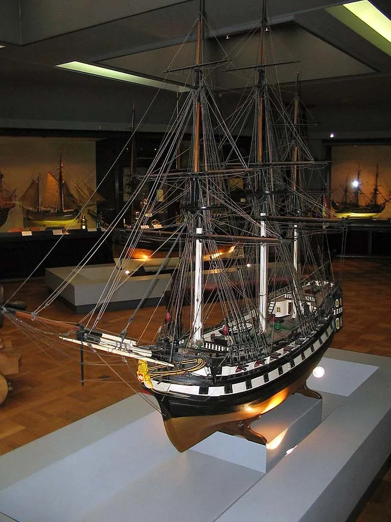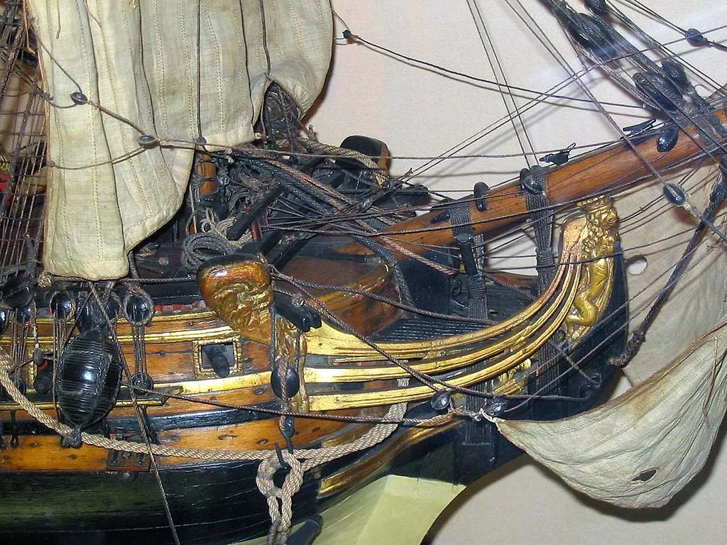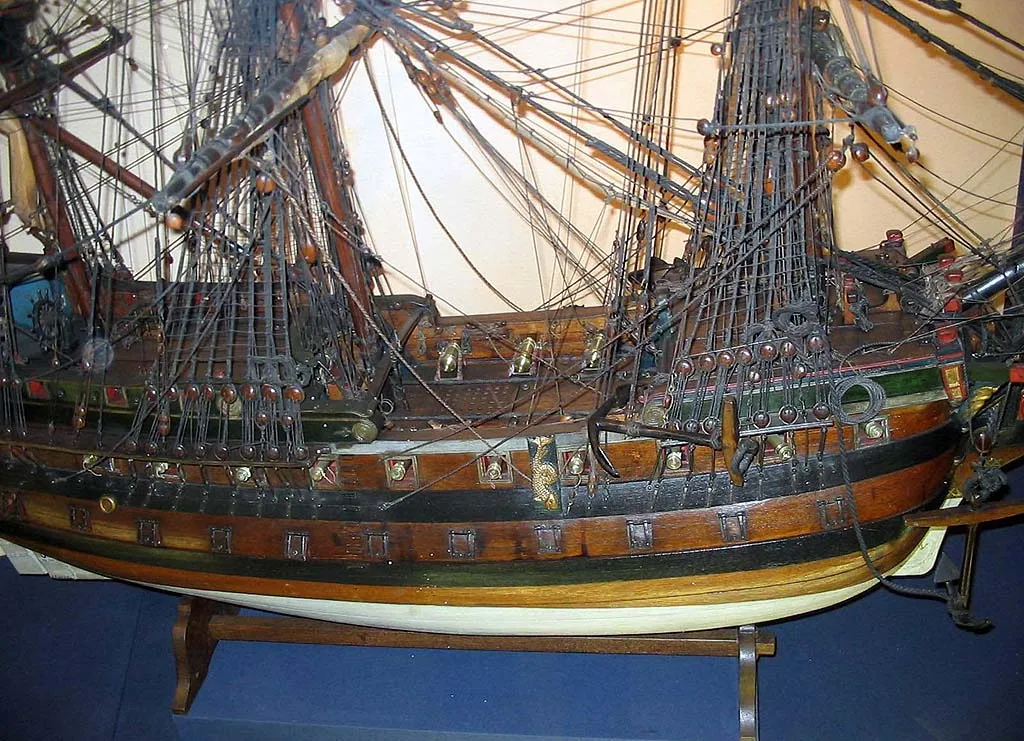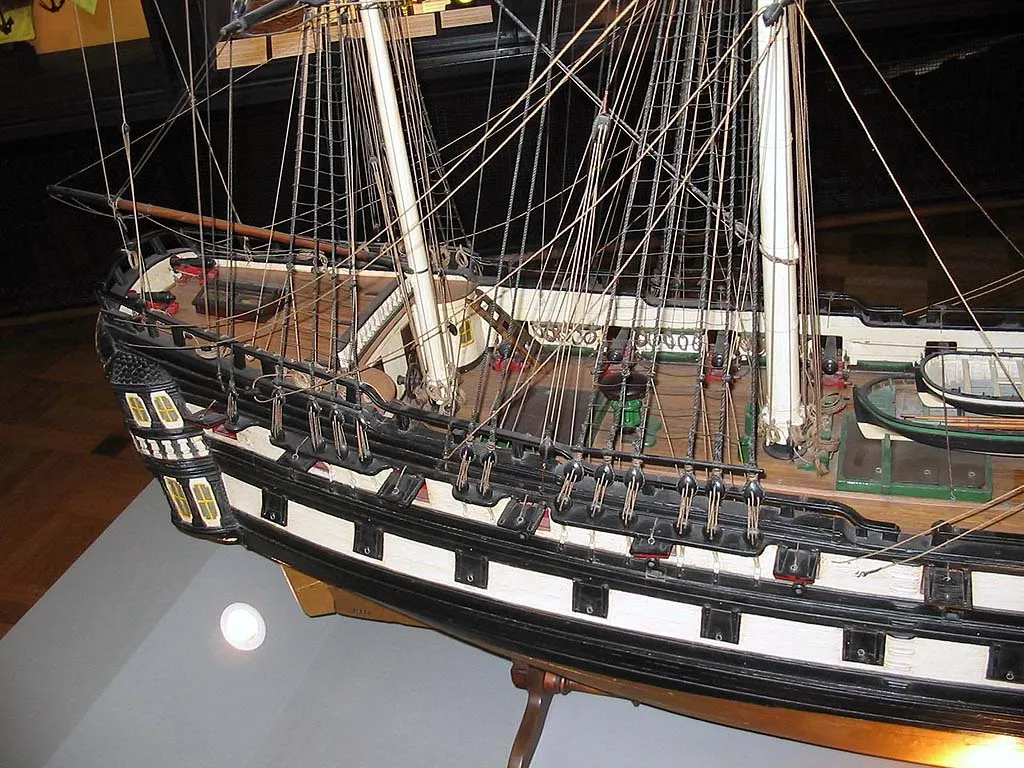 Вооруженное торговое судно, украшенное в носовой части гербом Антверпена, а на корме гербом Австрии. Вероятно, это судно Остендской Компании (Ostend Company), которое после роспуска Ост-Индийской компании имело порт приписки в Триесте. 2-ая половина 18-го века. Масштаб 1:20 |  Вооруженное торговое судно, украшенное в носовой части гербом Антверпена, а на корме гербом Австрии. Вероятно, это судно Остендской Компании (Ostend Company), которое после роспуска Ост-Индийской компании имело порт приписки в Триесте. 2-ая половина 18-го века. Масштаб 1:20 |  Вооруженное торговое судно, украшенное в носовой части гербом Антверпена, а на корме гербом Австрии. Вероятно, это судно Остендской Компании (Ostend Company), которое после роспуска Ост-Индийской компании имело порт приписки в Триесте. 2-ая половина 18-го века. Масштаб 1:20 |